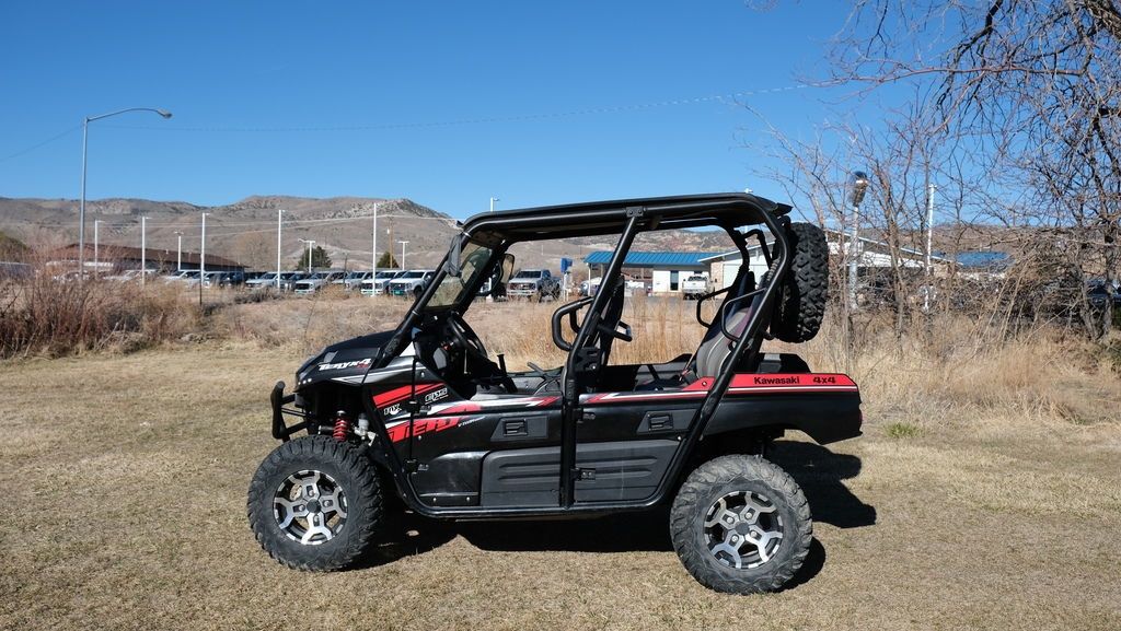 STOCK NUMBER: 5954 MILEAGE:2685 2019 Kawasaki Teryx4™ LETHE KAWASAKI DIFFERENCEKAWASAKI STRONGAggressive front end stylingOptimized settings for Fox Podium 2.0 shocksContinuously Variable Transmission (CVT) with confidence-inspiring automatic engine braking performanceFeatures may include:REAL STRENGTHDOUBLE-X STEEL TUBE FRAME IS WELDED STRONG FOR MAXIMUM RIGIDITY.SEALED REAR WET BRAKE REQUIRES ALMOST NO MAINTENANCE.ALL-STEEL FRONT BRUSH GUARD HELPS PROTECT BODYWORK.DOMINATING POWEREngineThe V-twin fuel-injected 783cc engine produces the power needed to take on challenging terrain. With strong low- and mid-range torque, it provides the muscle to conquer the toughest trails.CVTPower delivery is instant thanks to an automatic Continuous Variable Transmission (CVT) and centrifugal clutch. Precise throttle response means confident driving, while automatic engine braking helps you take on challenging descents.UNMATCHED PERFORMANCEPremium Fox Podium 2.0 shocks improve traction and acceleration, while dual front disc and a tight turning radius provide unmatched performance.16.7-FT. Turning radius and electric power steering easily take on narrow trails.Fox podium piggyback shocks with adjustable compressionDual front disc brakes for high-performance braking.