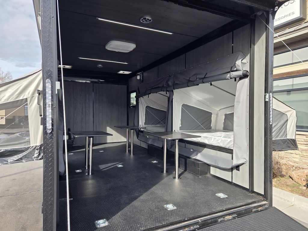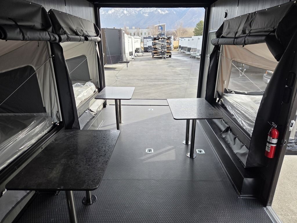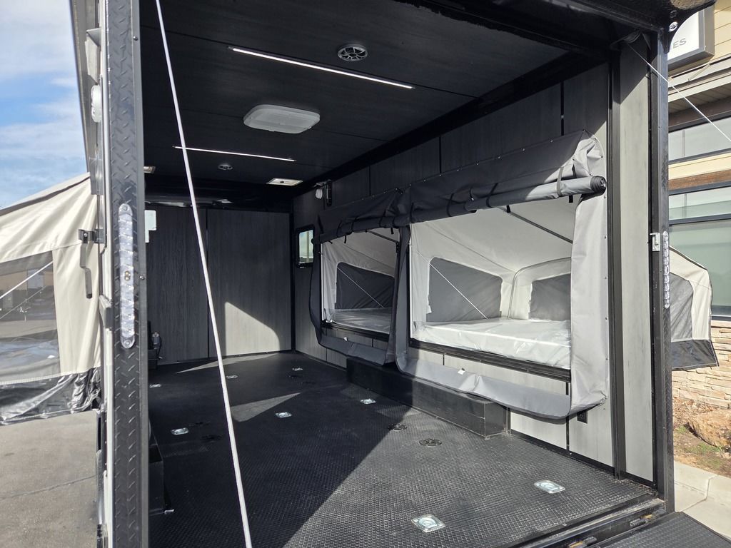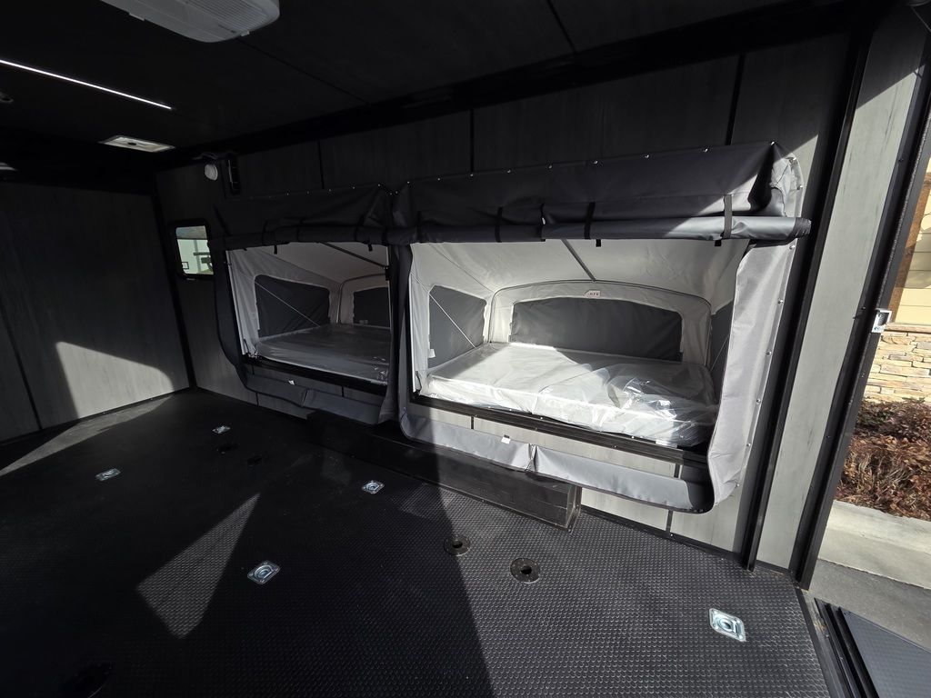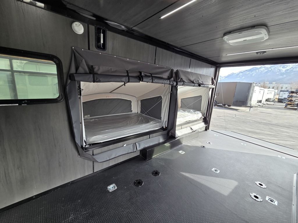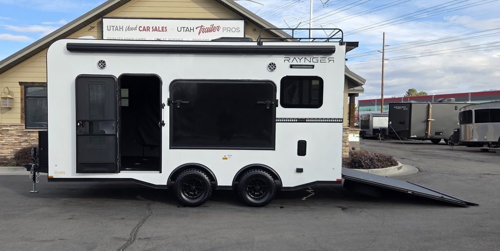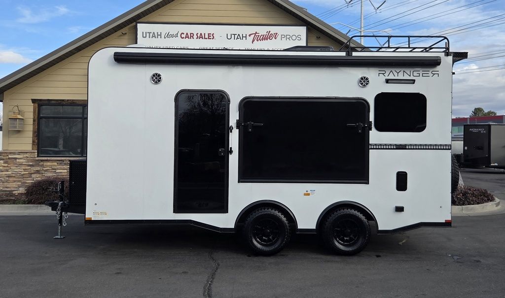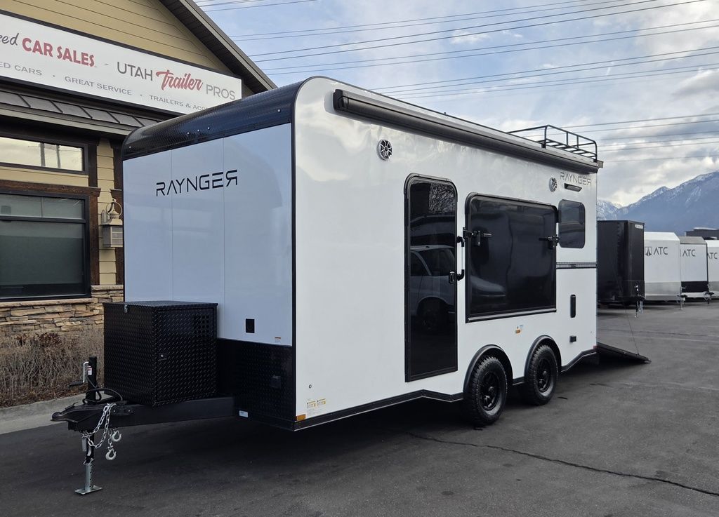 FREE NATIONWIDE SHIPPING!!! LIMITED TIME $339 A MONTH WITH ZERO DOWN WITH OUR SPECIAL LOCAL CREDIT UNION PARTNER!!! NO PRE-PAYMENT PENALTIES!!! NEW MODEL!!! WILL FIT ANY STOCK SIDE BY SIDE UTV!!! RAYNGER PREMIUM OFF ROAD TOY HAULER CAMPER!!! 18 INCH GROUND CLEARANCE!!! OFF ROAD TIRES!!! 10K GVWR, 5,600# Carry Capacity!!! FULLY INSULATED!!! HEATING AND A/C!!! WET SOUND STEREO!!! THREE FOLD OUT/POP OUT TENTS WITH PREMIUM MATTRESS!!! CARGO BASKET!!! LED LIT AWNING!!! 87 Inch Rear Entry Height/90 INCH INTERIOR HEIGHT!!! 95 Inch Rear Entry Width!!! Aluminum Ventilated Locking Generator Box!!! UPGRADED TORSION AXLES!!! And Much MUCH MORE!!! Check out our Specs!!! 16 Foot and 18 Foot Models will fit ANY stock 4 Seater Side by Side • 6” I Beam Frame• Flat Top Design• Flat Front Design• Wall Posts 16” on Center• Cross Members 16” on Center• Roof Bows 16” on Center• Rust Inhibiting Z-Tech Protection on Chassis• Ameraguard on Tongue• Ameraguard on Rear Bumper• Ameraguard Around All Door Openings and Stepwell• Ameraguard Around Edges of Ramp Door• 3500 LB Spring Axles• 2-5/16” Coupler• One-Piece Aluminum Roof• ST235/75R15 Aluminum Wheels with Chrome Center Caps• 2000# Ramp Door with Eberhard Latch• 30” Tempered Glass RV Door with Screen Door• .030 Exterior Metal with Screwless Sides• 24” Black Stoneguard• 3” Black Bottom Trim• Sand Pad• Black Door Hold• 2.7mm Charcoal Textured Vinyl Ceiling • 9mm Charcoal Textured Vinyl Walls• 3/4” Engineered Wood Floor with Rubber Coin Overlay• (6) 1200 LB Floor D rings Installed with Backer Plates• LED Clearance Lights and Tail Lights• LED Back-up Lights• No Show Wheel Box• Spoiler with Toggle Switch• RV Step• 7’ Interior• (2) 17” Chrome Base Lights with Switch• (1) Black 17” Spot Light with Switch• (1) 30 Amp Panel with Marine Plug• A/C Unit with Heat Strip• (3) Interior Recepts• (1) Exterior Recept• 12V Battery and Charge Line• Prep for Backup Camera• Wet Sounds System• (3) Blue Interior Cabinet Lights• (1) 6’ Section of Flex Lights• Black ATP Rear Header and Hoop• Black ATP Fenders• Insulated Walls & Ceiling• Base Cabinets• Overhead Cabinets with Netting Over Compartments• Pop Out Tent• Black ATP Storage/Generator Box Mounted On Tongue 7TW098101