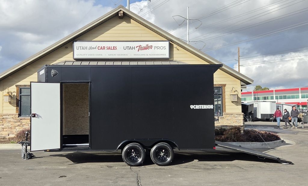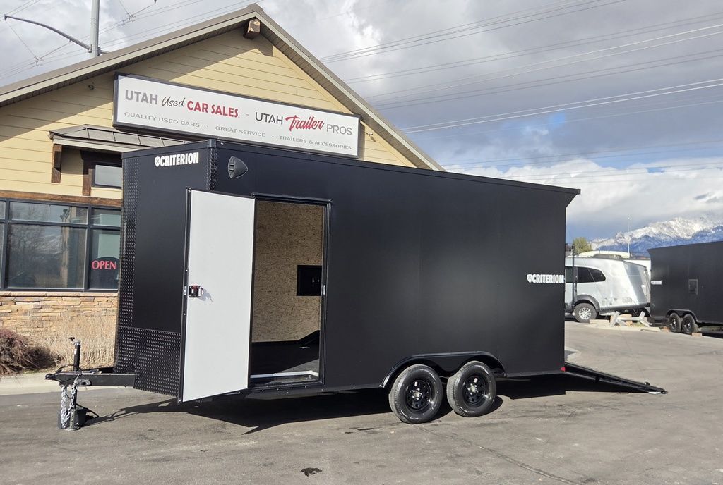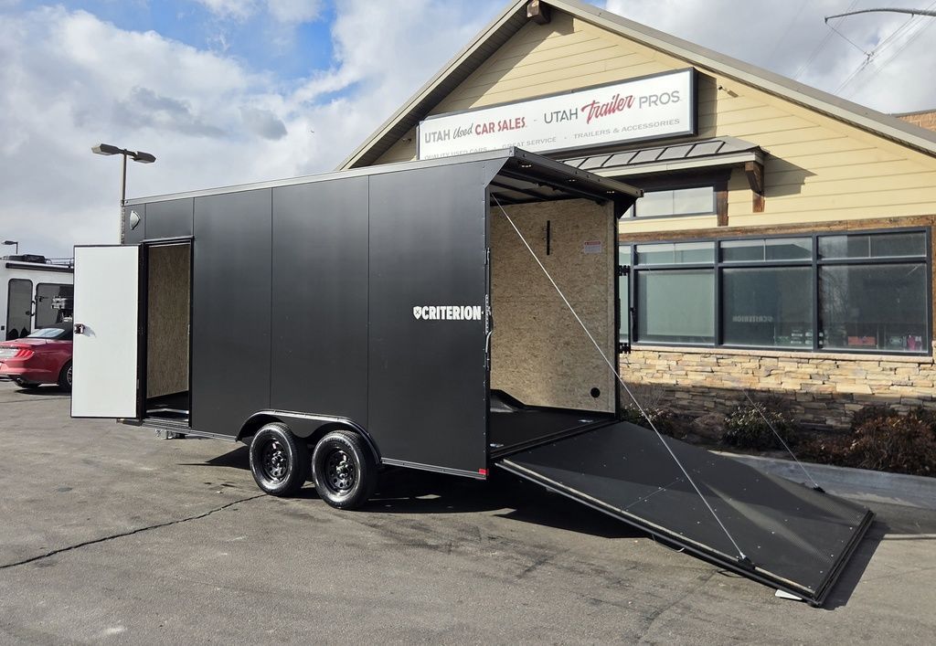 $131 A MONTH WITH ZERO DOWN WITH OUR LOCAL CREDIT UNION PARTNER!!! EASY IN HOUSE APPROVALS WITH NO PRE PAYMENT PENALTIES!!! CRITERION UTV Pkg!!! 6 inches added height for an 87 Inch Rear Entry Height, and a 90-inch interior Height!!! Extra Tough Poly Bead Rubber Floor! Industry Leading .080 PolyCore Aluminum Exterior!!! Rear Spoiler with LED Load Lights! Roof Vent. 6x 5000# Heavy Duty Recessed and back plated D-Rings!!! Drivers Side Side Access Door! Fuel Pass Through Door! Criterion Trailers are Super Premium Steel Framed Trailers with a 3 Year Factory Warranty!!! Come take a look at Criterion to see unparalleled quality!!! 7TA009899