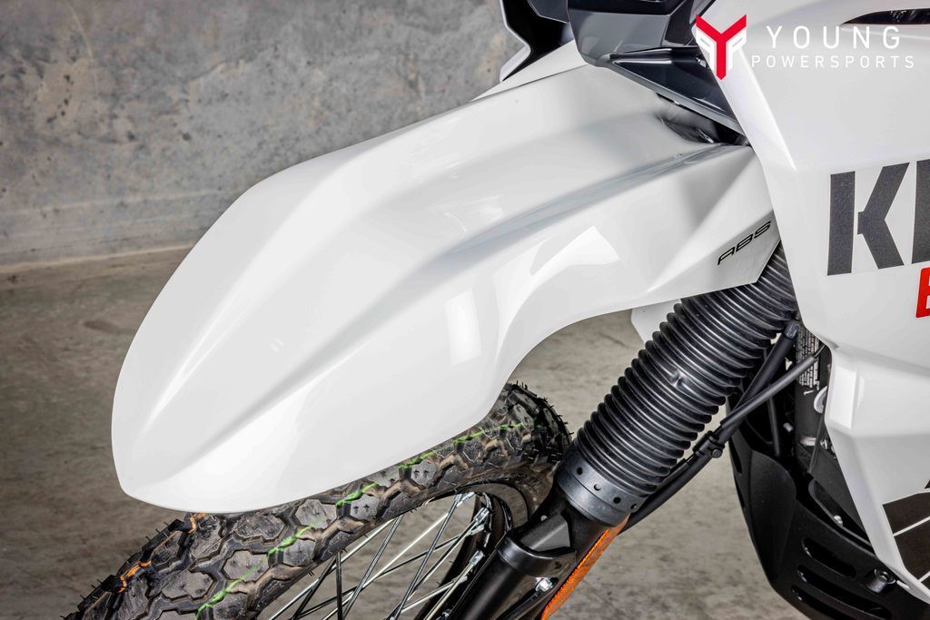 Ride confidently through varying terrain with a durable chassis and long-travel suspension. A sturdy 41mm fork handles suspension duties up front and an adjustable Uni-Trak® rear suspension system helps the KLR®650 motorcycle deliver an all-around composed riding character while front and rear disc brakes help you stop with confidence.