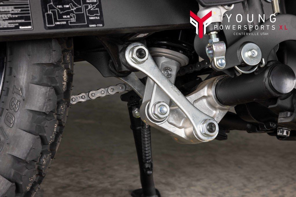 Ride confidently through varying terrain with a durable chassis and long-travel suspension. A sturdy 41mm fork handles suspension duties up front and an adjustable Uni-Trak® rear suspension system helps the KLR®650 motorcycle deliver an all-around composed riding character while front and rear disc brakes help you stop with confidence.