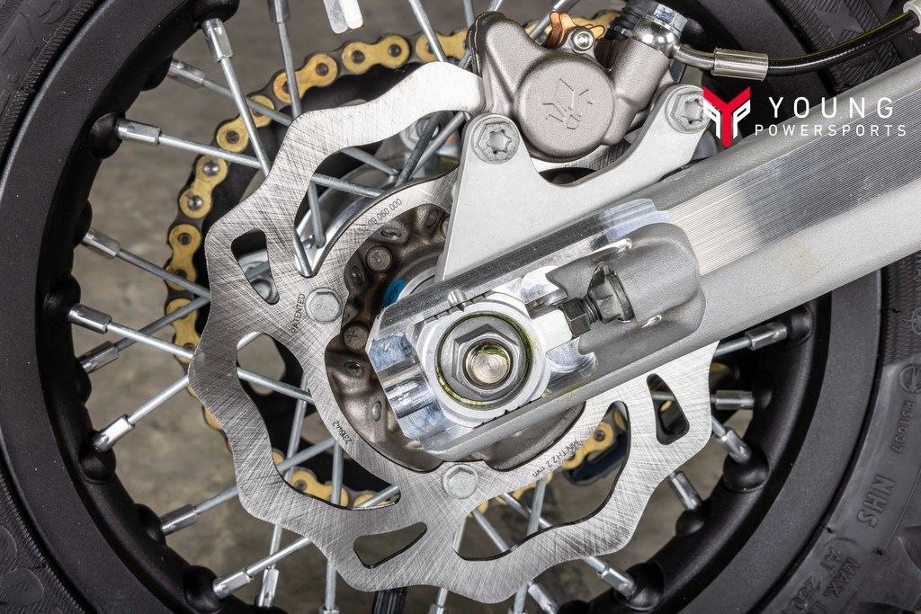 By combining hydraulically operated brake calipers and waved, state-of-the-art discs front and rear, braking performance is consistent and reliable. Durability of the calipers and discs extends maintenance schedules while the forged rear brake pedal enhances control.