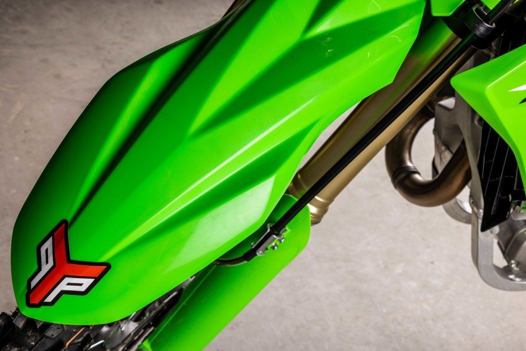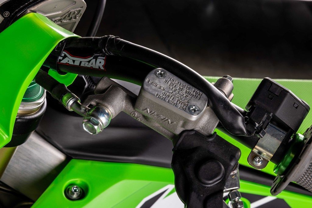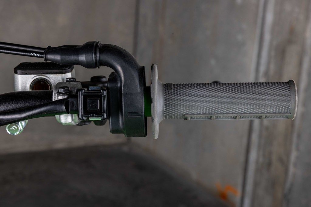 All KX™450 motorcycle advanced controls are streamlined for rider convenience. Kawasaki TRaction Control (KTRC), Power Mode Selection, and Launch Control Mode are available at the push of a button. These features enable riders to quickly adjust power delivery and traction for riding conditions and preference. The KX450 offers superior features designed to inspire confidence.