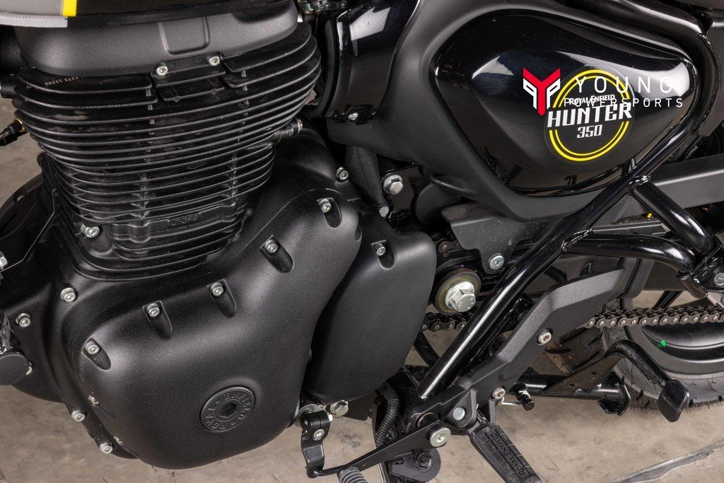 AGILITY WITHOUT FRAGILITYAt the heart of the Hunter beats a fuel-injected, long-stroke 350cc J-engine that delivers a smoother ride, higher RPM and dollops of torque. Paired with a steady downtube spine frame and grounded suspension, the Hunter 350 gives the right amount of power and precision for revving up the city streets.