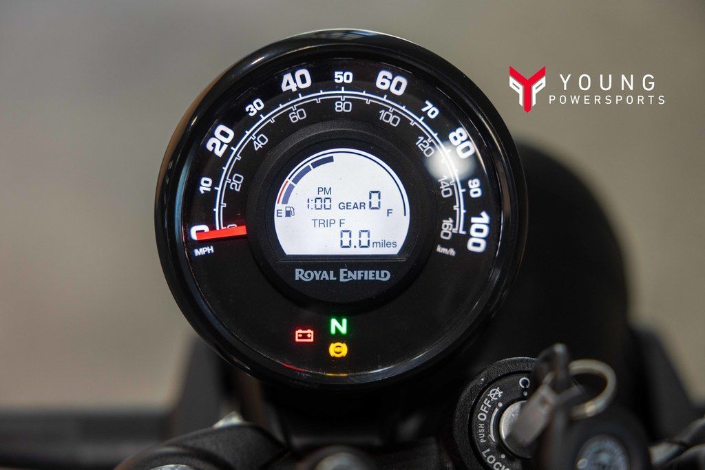 A shoutout to the analogue era but perfectly in sync for modern-day riding, the Hunter features a retro-style speedometer along with a digital LCD screen that tells you everything you need to know and is compatible with the Royal Enfield Tripper Navigation System.