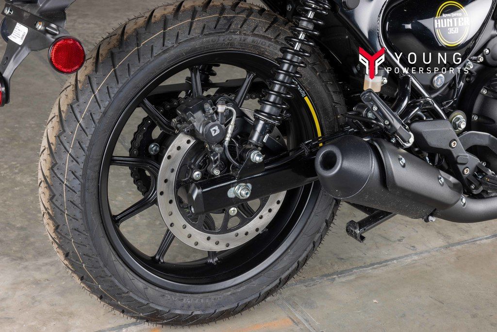 The Hunter 350 is the only Royal Enfield in production to feature super maneuverable 17” front and rear tires, and striking cast alloy wheels. The tubeless tires let you ride uninterrupted for as long as you want, minus the puncture paranoia.