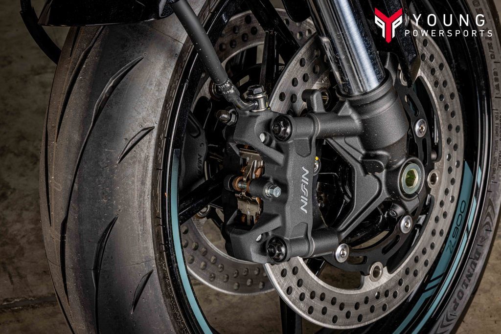 Ride confidently through varying terrain with a durable chassis and long-travel suspension. A sturdy 41mm fork handles suspension duties up front and an adjustable Uni-Trak® rear suspension system helps the KLR®650 motorcycle deliver an all-around composed riding character while front and rear disc brakes help you stop with confidence.
