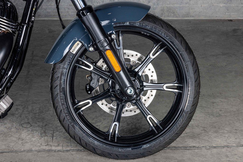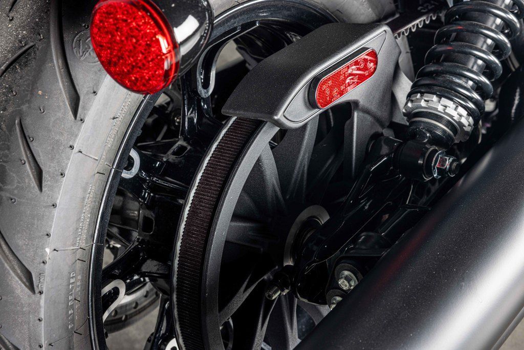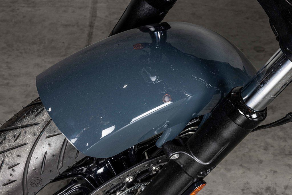 Loaded with attitude and blacked-out premium gloss black finishes with bobbed fenders. A welded steel tube frame, large headlight bucket with nacelle, and covered forks and rear shocks give a nod to traditional bobber style and deliver a visually striking experience.