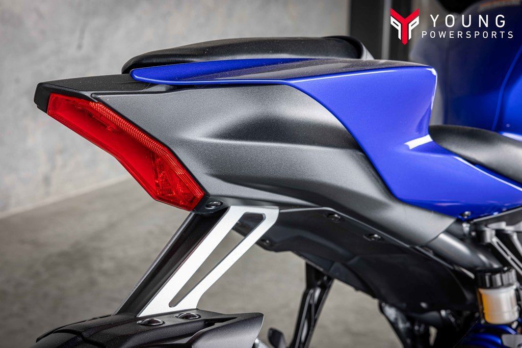 The YZF-R7's aggressive design boasts the slimmest bodywork in the Supersport lineup for optimal aerodynamics, handling and agility, while the signature M-shaped duct and tail wing are reminiscent of Yamaha's flagship Supersport YZF-R1.