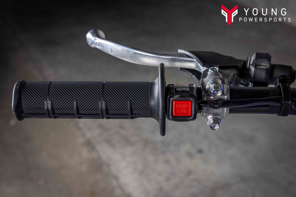 Cross Country ErgonomicsA racy "gripper"-type seat and narrow fuel tank combined with a tapered aluminum handlebar and adjustable mounts create greater freedom of movement and more comfortable ergonomics for riders.