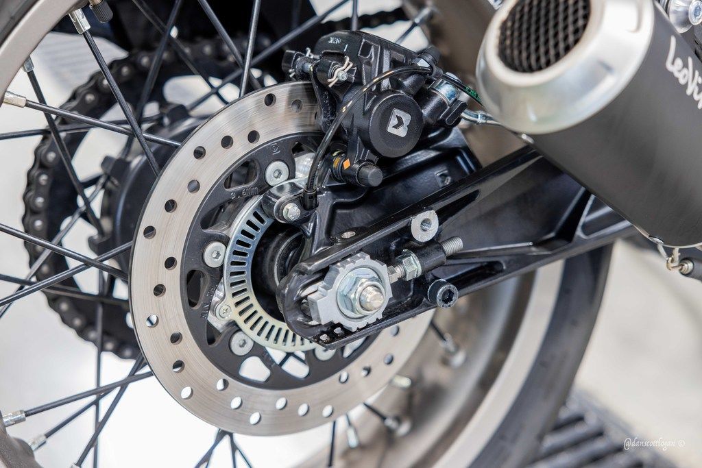 The Vitpilen 401 is fitted with hydraulic ByBre brake callipers, which are manufactured to the highest standards, and in combination with 320mm front and 230mm rear perforated steel discs, deliver controllable and confident braking performance.The Vitpilen 401 is also fitted with a state-of-the-art Bosch ABS system, ensuring the highest level of safety in varying braking conditions.