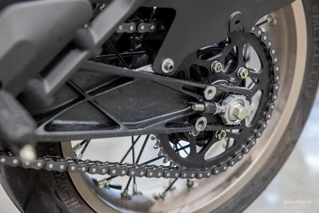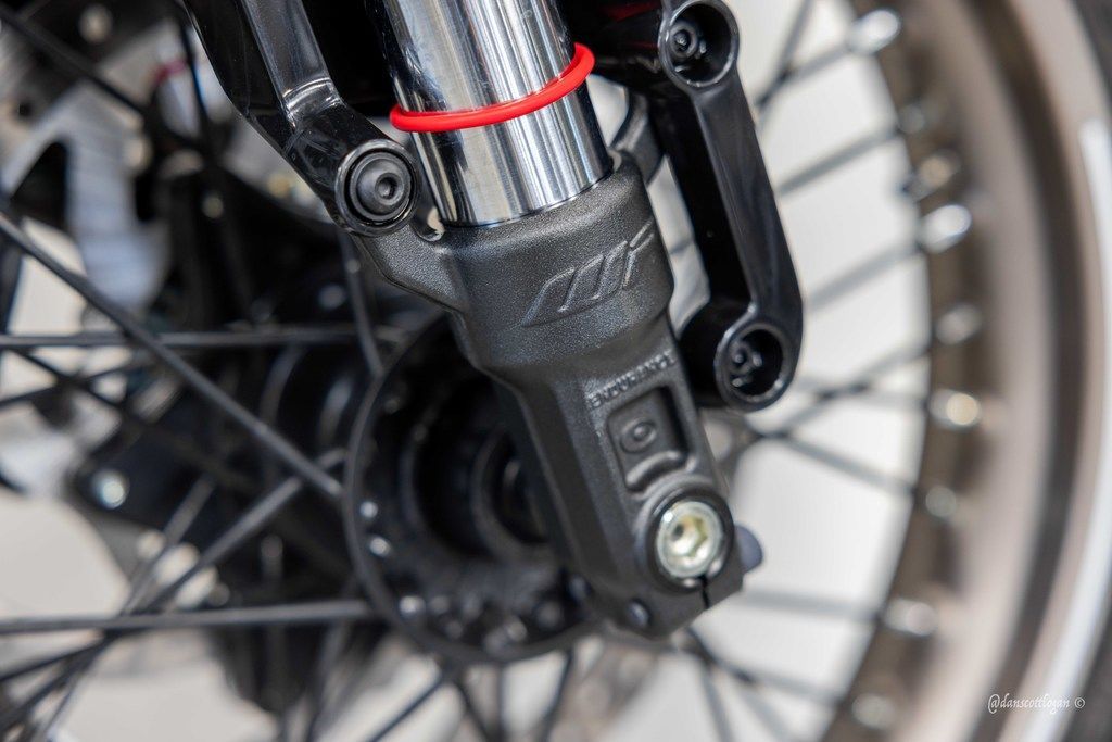 The 17" anodised spoked wheels are a design highlight of the Vitpilen 401. The wheels offer a unique sense of style and are also very robust, offering premium reliability on unpredictable and challenging urban terrain.