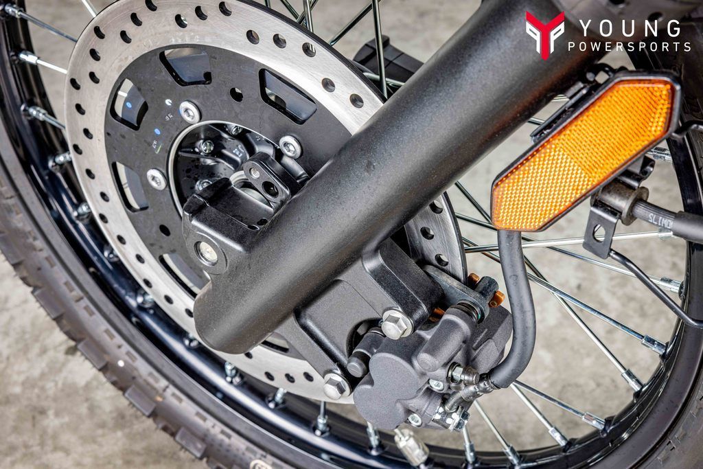Ride confidently through varying terrain with a durable chassis and long-travel suspension. A sturdy 41mm fork handles suspension duties up front and an adjustable Uni-Trak® rear suspension system helps the KLR®650 motorcycle deliver an all-around composed riding character while front and rear disc brakes help you stop with confidence.