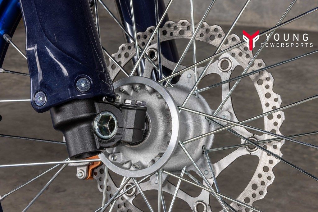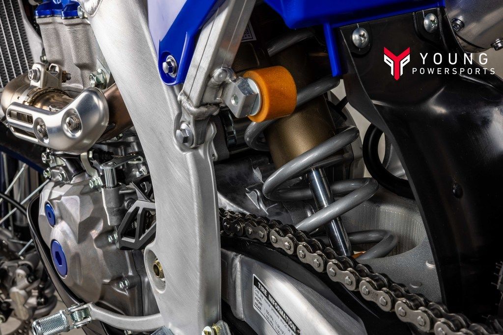 Aluminum Bilateral Beam FrameStriking the perfect balance of precise cornering performance and handling stability, the redesigned aluminum bilateral beam frame consists of more than 10 different aluminum components welded together with YZ450FX-specific XC-tuned engine mounts. The result is a better handling machine with lighter feel, improved bump absorption and increased traction, allowing the rider to enter corners with greater confidence and more line choices.