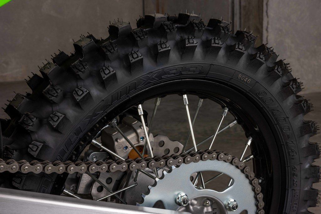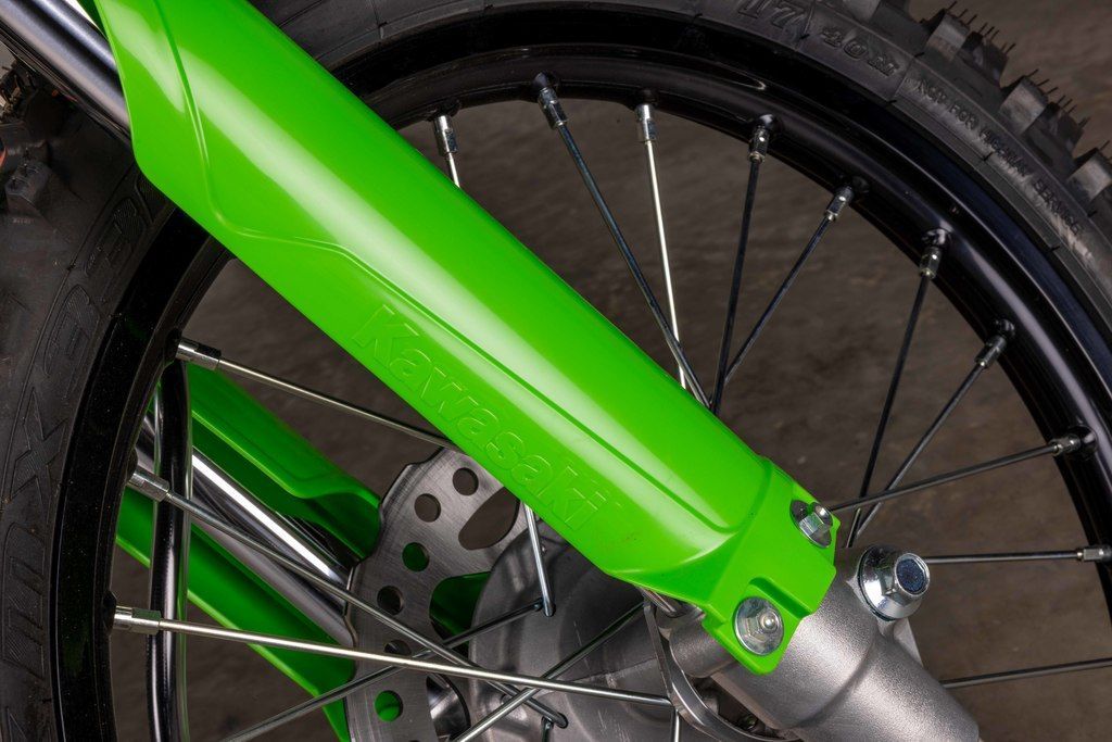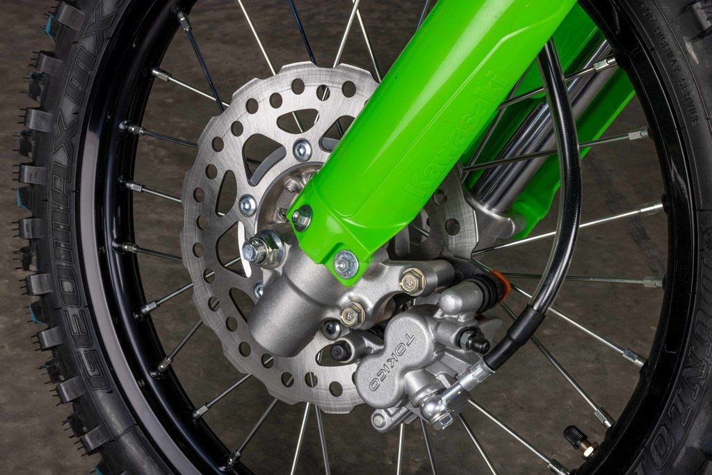 The 36mm inverted cartridge fork features adjustable compression damping and enables excellent tuning throughout the impressive 10.8-in of travel. The Uni-Trak® rear suspension is just as versatile with a fully-adjustable KYB® shock that also features 10.8-in of travel. Dunlop MX33 tires offer excellent grip, slide control, bump absorption and durability.