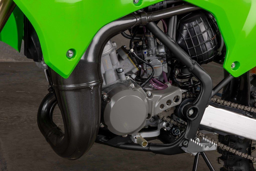The KX™85 motorcycle brings Kawasaki's proven performance to the amateur ranks. Proportionate power of the 84cc engine and race-ready technology grant young racers the championship-winning advantage they need to sharpen their skills.