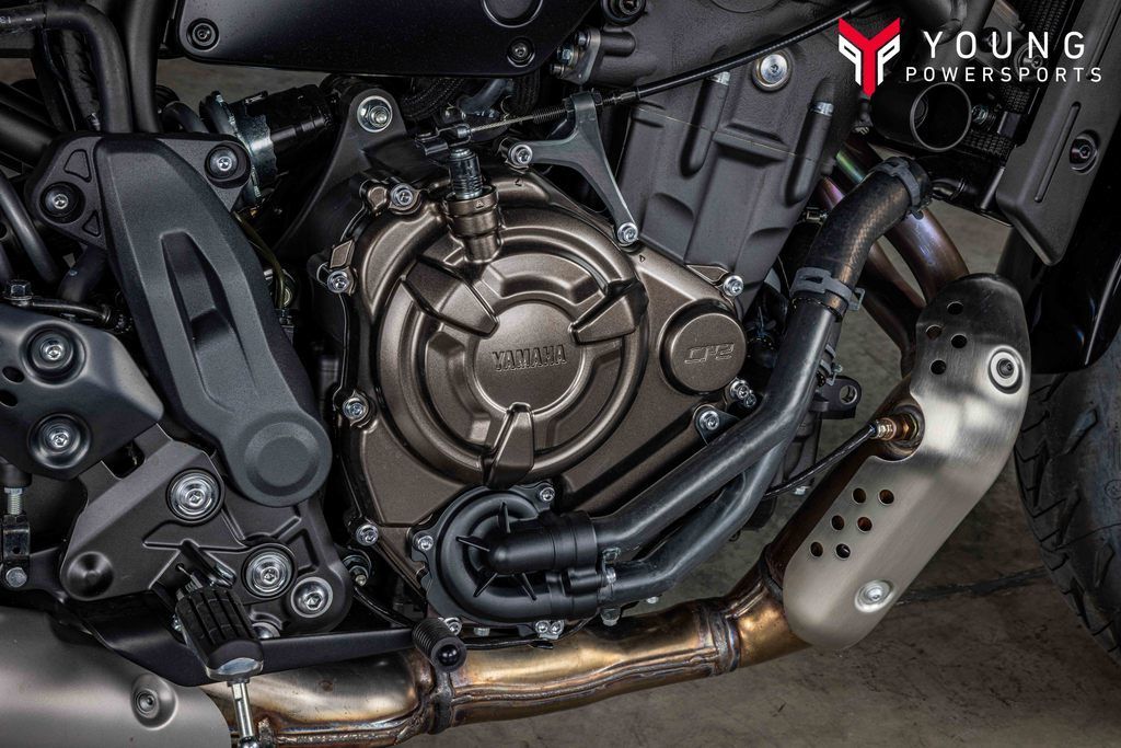 The compact two-cylinder engine provides a unique power character with its outstanding torque and throttle response, complemented with strong high-rpm pulling power. It also features Yamaha's -œCrossplane Concept- 270-degree crank that provides linear torque development in response to the rider's throttle input.