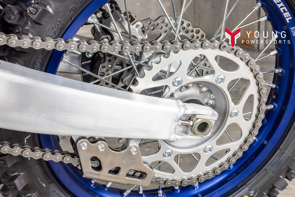 Aluminum Bilateral Beam FrameStriking the perfect balance of precise cornering performance and handling stability, the redesigned aluminum bilateral beam frame consists of more than 10 different aluminum components welded together with YZ450FX-specific XC-tuned engine mounts. The result is a better handling machine with lighter feel, improved bump absorption and increased traction, allowing the rider to enter corners with greater confidence and more line choices.