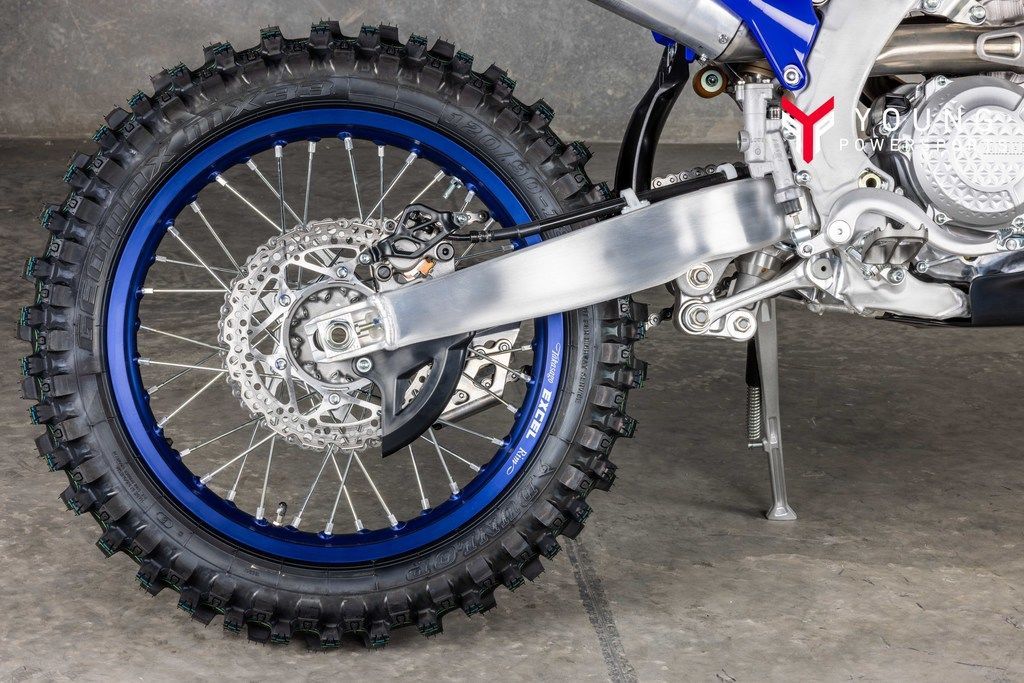 Powerful 450cc Four-Stroke EngineFeaturing a reversed cylinder head layout, forged aluminum piston, 39 mm titanium valves, lightened crank assembly and dry sump lubrication, the YZ450FX's advanced DOHC four-stroke engine is light, compact and world renowned for its incredibly broad pulling power across the entire rev range. Additionally, ECU settings are tailored to suit the specific needs of cross country and enduro competition.