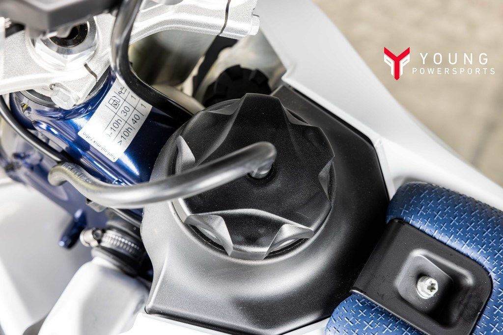 A new airbox concept features precisely positioned inlet ducts that ensure maximum airflow and filter protection. The Twin Air filter behind the left side panel remains easily accessible without tools for a fast and simple replacement of the air filter.
