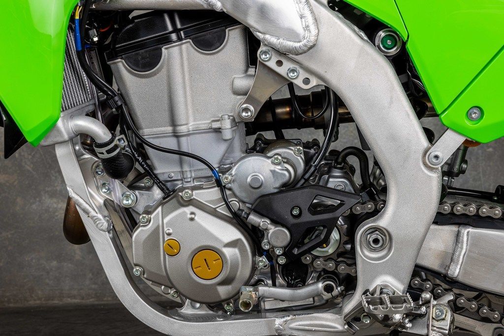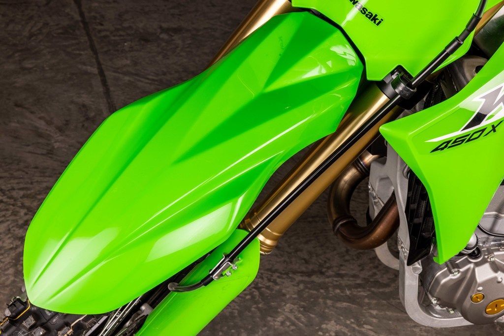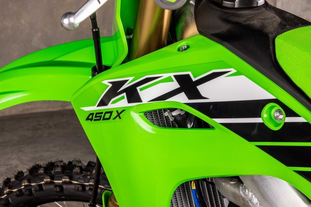 The same championship-proven engine performance found in KX™ motocross bikes propels the KX™450X motorcycle to the finish line. Stay ahead of the competition with a powerful engine that delivers broad, useable torque and strong, responsive power.