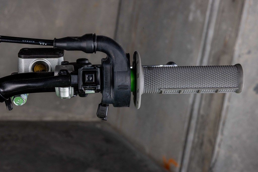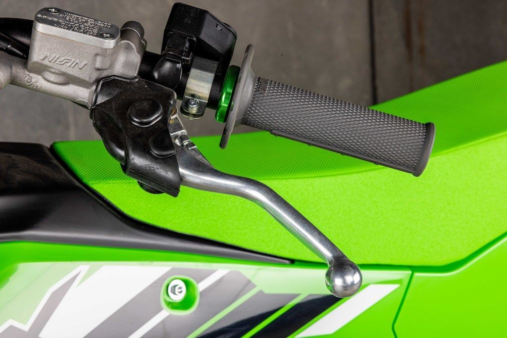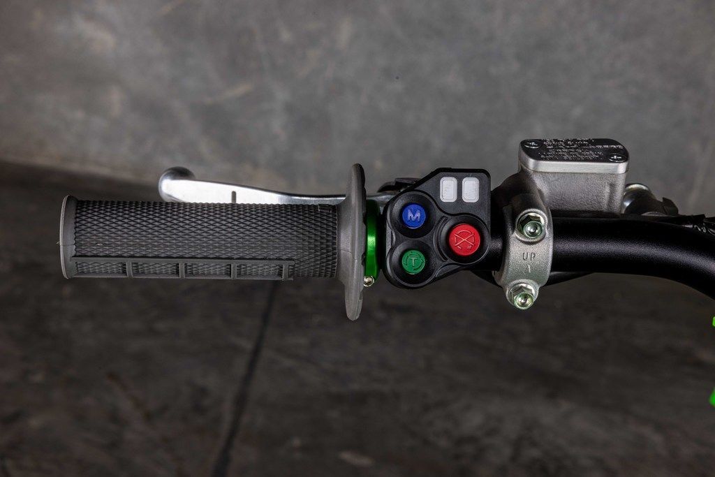 The KX™450X motorcycle's advanced controls are streamlined for rider convenience. Kawasaki TRaction Control (KTRC), Power Mode Selection, and Launch Control Mode are available at the push of a button. These features enable riders to quickly adjust power delivery and traction for riding conditions and preference. The KX450X provides advanced technology designed to inspire confidence.