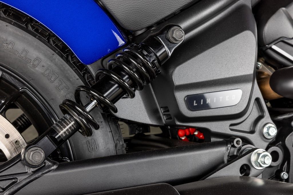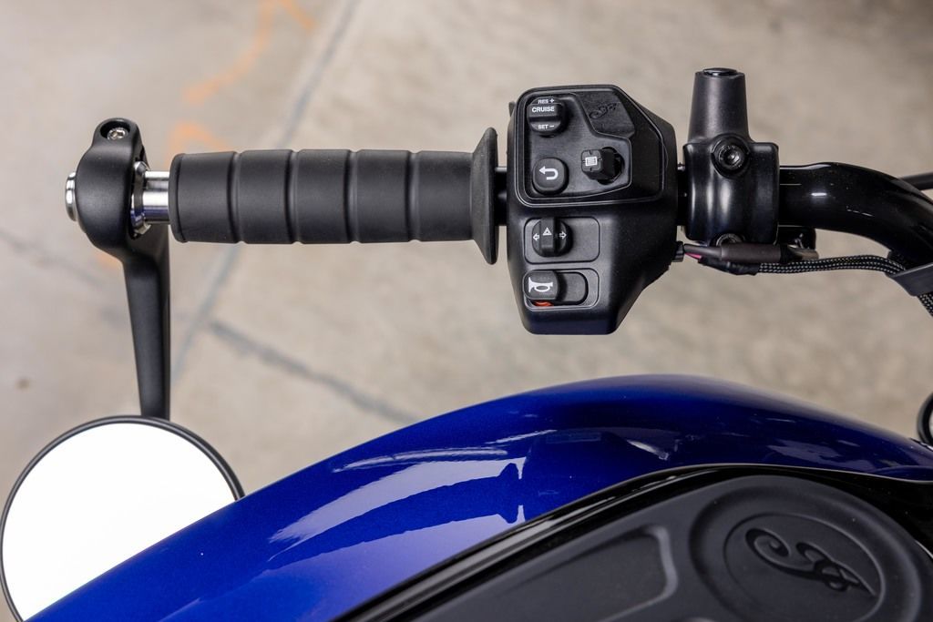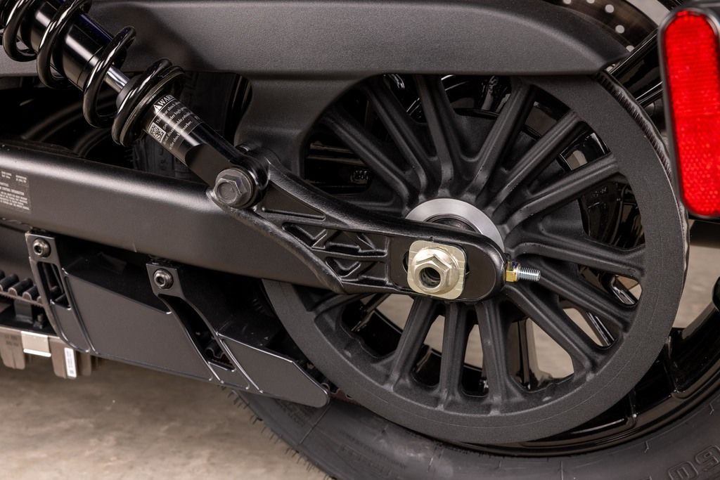 A solo bobber-style seat reinforces a minimalist bobber aesthetic—without trading comfort—and firmly plants you in control of the bike. Slammed 2” suspension creates a slightly lower seat height, yet keeps an aggressive, custom look.