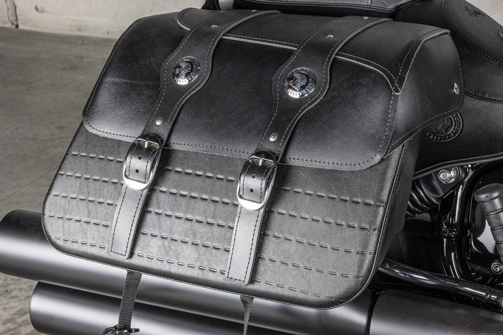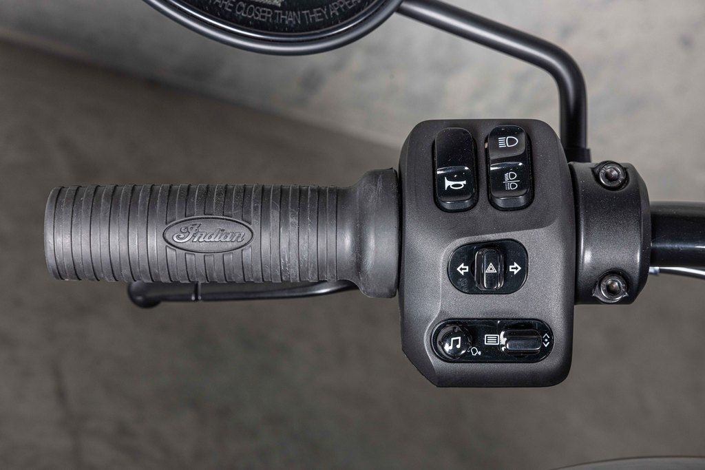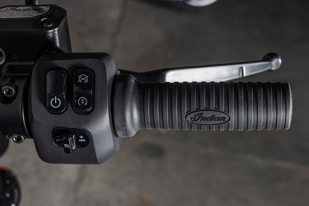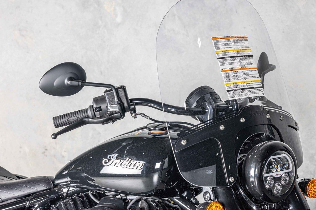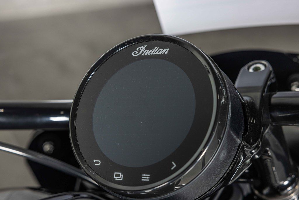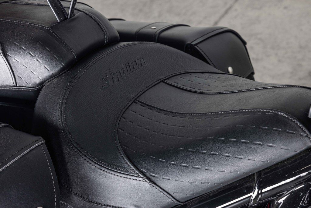 Premium blacked out or chrome finishes, fork covers, wire wheels, and large headlight nacelle, and iconic Indian Motorcycle script badging on the tank, commanding attention at every corner.