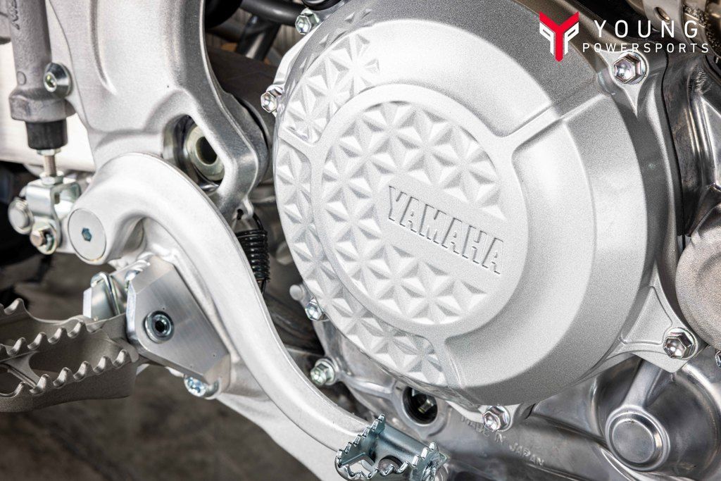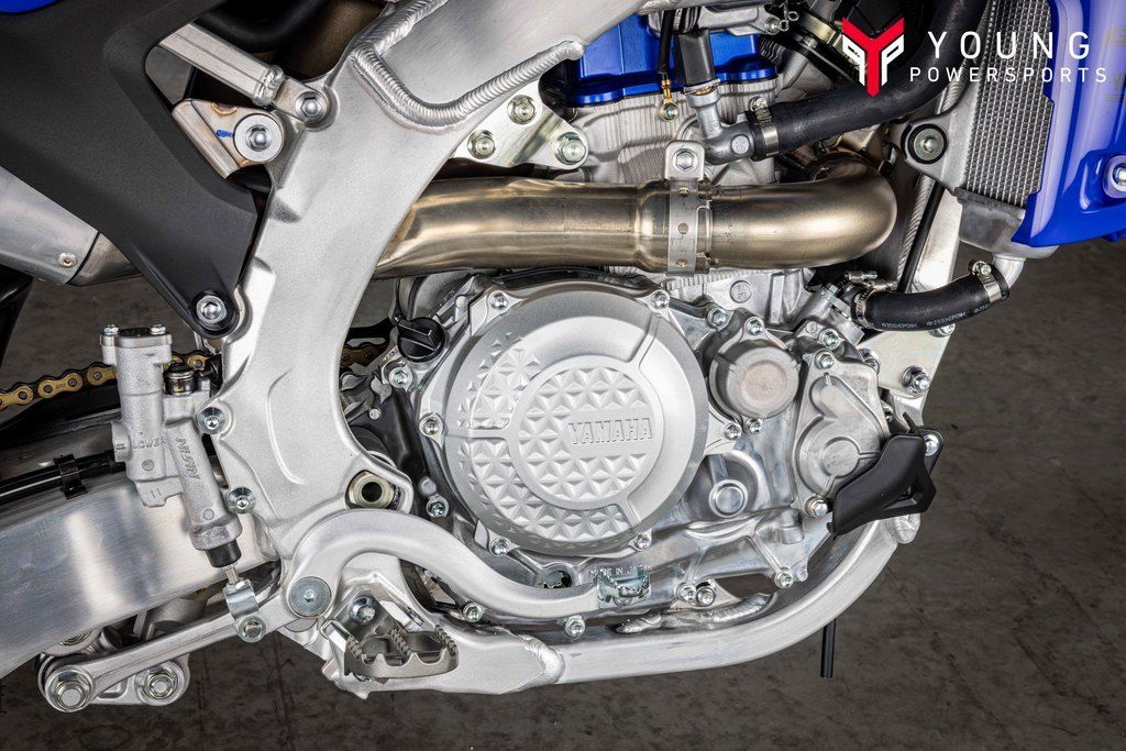 Featuring a reversed cylinder head layout, forged aluminum piston, 39 mm titanium valves, lightened crank assembly and dry sump lubrication, the 2026 YZ450F's advanced DOHC four-stroke engine is light, compact and world renowned for its incredibly broad pulling power across the entire rev range