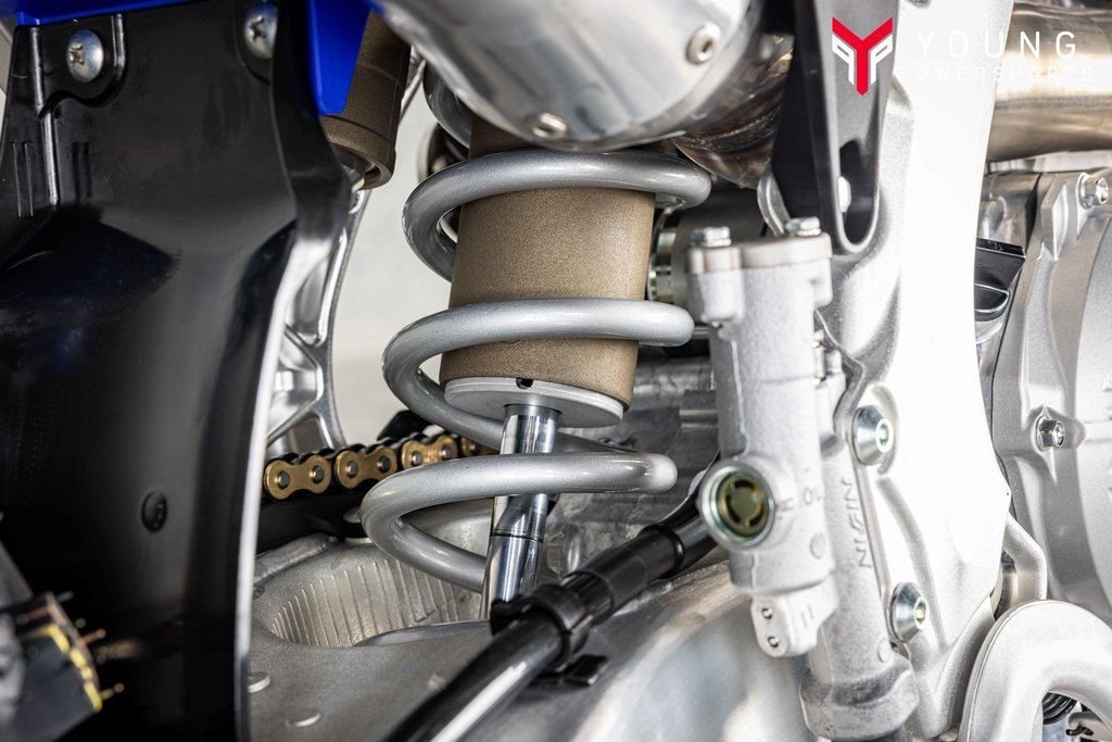 The YZ450F's high-spec fully adjustable Speed Sensitive System KYB® coil spring-type fork is recognized as the gold standard in the 450 class, providing exceptional feel and bump absorption. A new high performance KYB® shock with new hand-operated low-speed compression clicker further enhances damping feel with less bump reaction, providing the confidence to ride harder for longer.