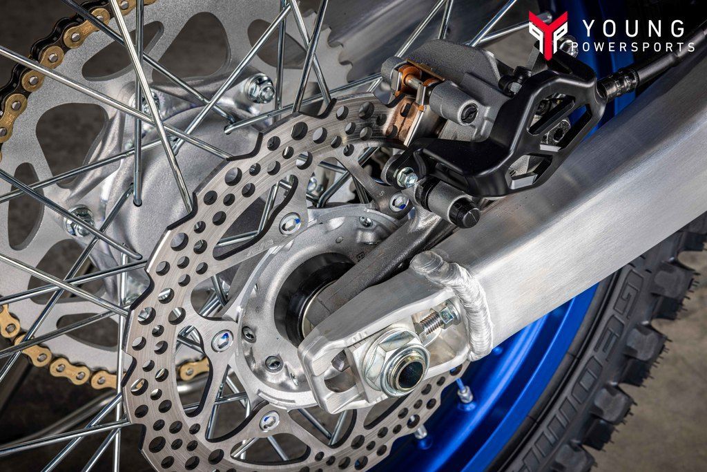 The precisely tuned aluminum bilateral beam frame provides just the right amount of strength and flex for the perfect balance of stability and cornering performance. The result is a better handling machine with lighter feel, more agility and increased traction allowing the rider to enter corners with greater confidence and more line choices.
