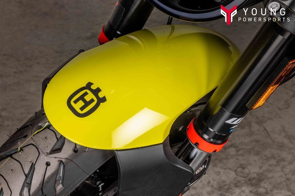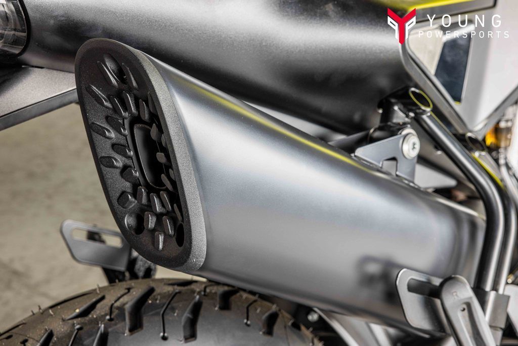 With a roadster-inspired design, the Vitpilen 801 only features essential bodywork that wraps tightly around the upper frame to create a close connection between the rider and the machine. The unique and progressive styling is boosted by the striking graphics and contrasting tones that combine to exude a distinctive appearance. Up front, and giving the Vitpilen 801 a progressive identity, a Bi-LED headlight sits proudly and lights up the road when the sun goes down.