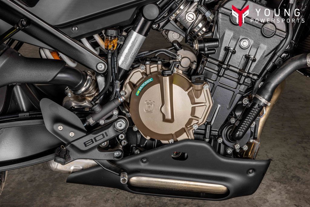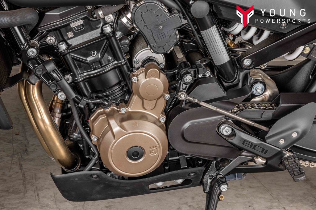 The Vitpilen 801 is powered by a compact, 799 cc parallel-twin engine featuring advanced engineering techniques including active crankcase evacuation and semi dry-sump lubrication, ensure exceptional efficiency in addition to delivering outstanding performance and durability, with service intervals set at 15,000 km.