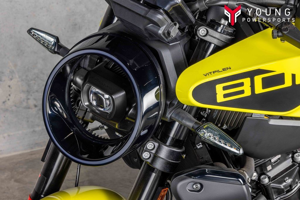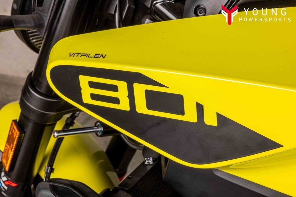 The Vitpilen 801 is a highly capable and dynamic roadster that delivers a riding experience like nothing before it. Taking design inspiration from the Swedish heritage of the brand, this beautifully crafted, modern motorcycle is characterized by its LED projector lens headlight, which features a surrounding light ring for an unmistakable look. Pure performance comes from the 799 cc parallel-twin engine with multiple electronic rider aids tailoring the delivery for a customized set-up. Personalization extends to the premium, adjustable WP suspension and a choice of up to four ride modes that ensure the Vitpilen 801 is accessible to a broad range of riders.
