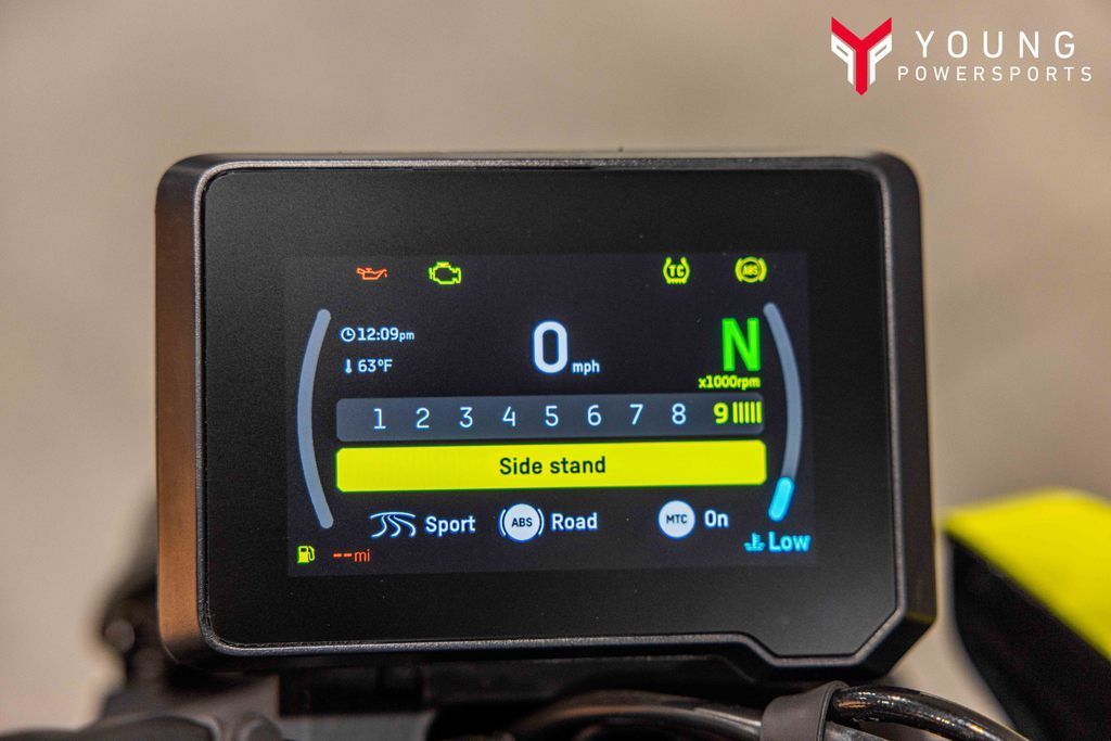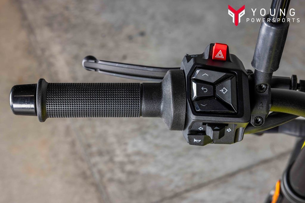 A 5" TFT dashboard with a bonded glass screen shows vital information to riders. The travelling speed, fuel level, and the selected gear are all clearly displayed and visible at a glance. It is controlled by the backlight switch cubes on the left side of the handlebar.