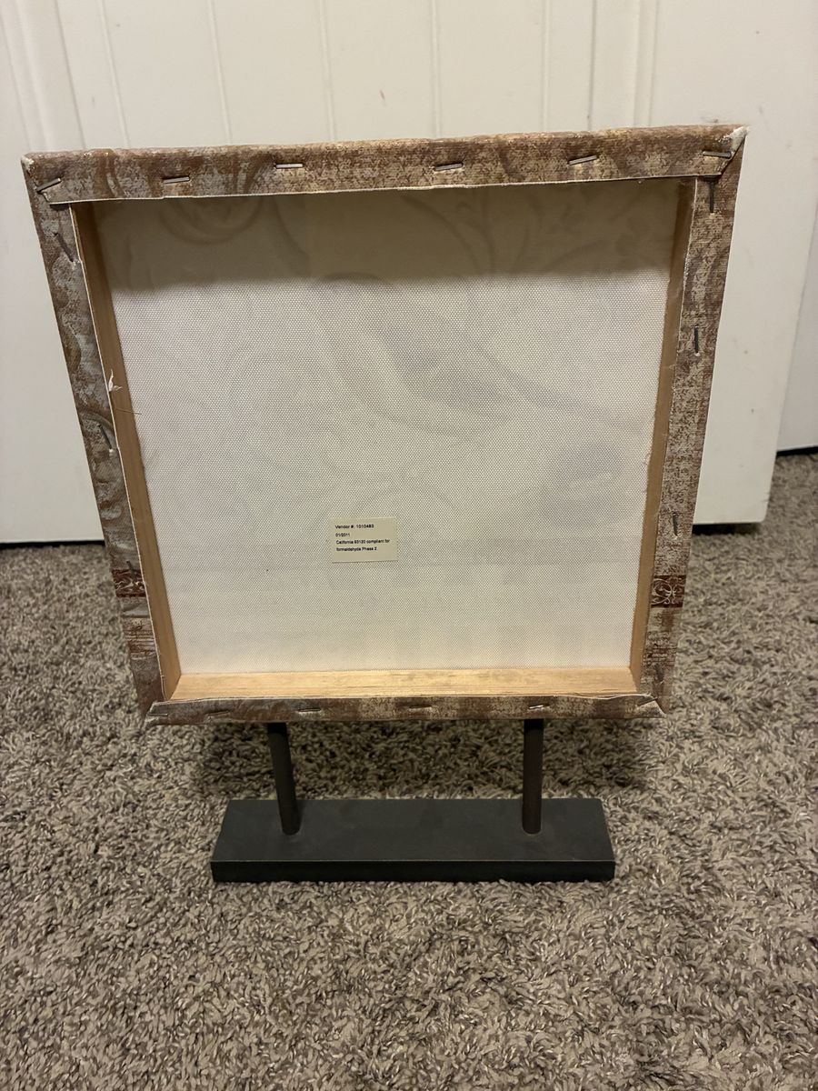 VenmoBeautiful bird/ music design on canvas home decor. Wood frame with stand. Measures 14" talll 10" wide.