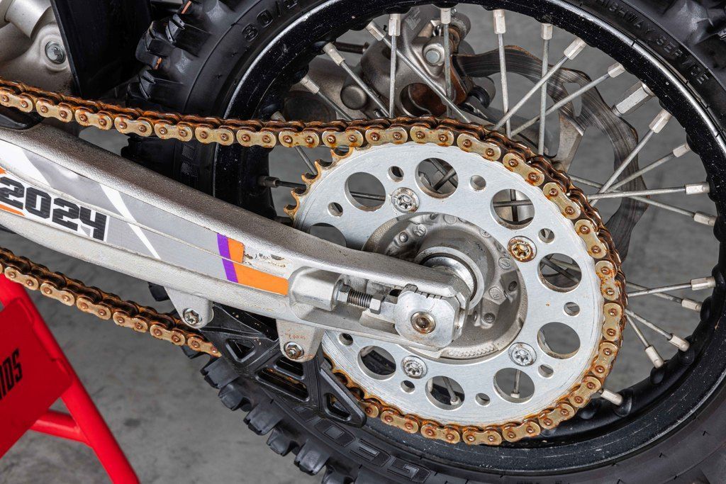 Different adjustability options were built into the 2024 KTM 50 SX construction using scientific statistical data and young racers' input data. Finding the right fit for your little ripper is easy thanks to height-adjustable suspension, handlebar position, subframe, and bodywork, taking the seat height from a low setting of 24.9 inches (634 mm) to a taller setting of 26.8 inches (682 mm).