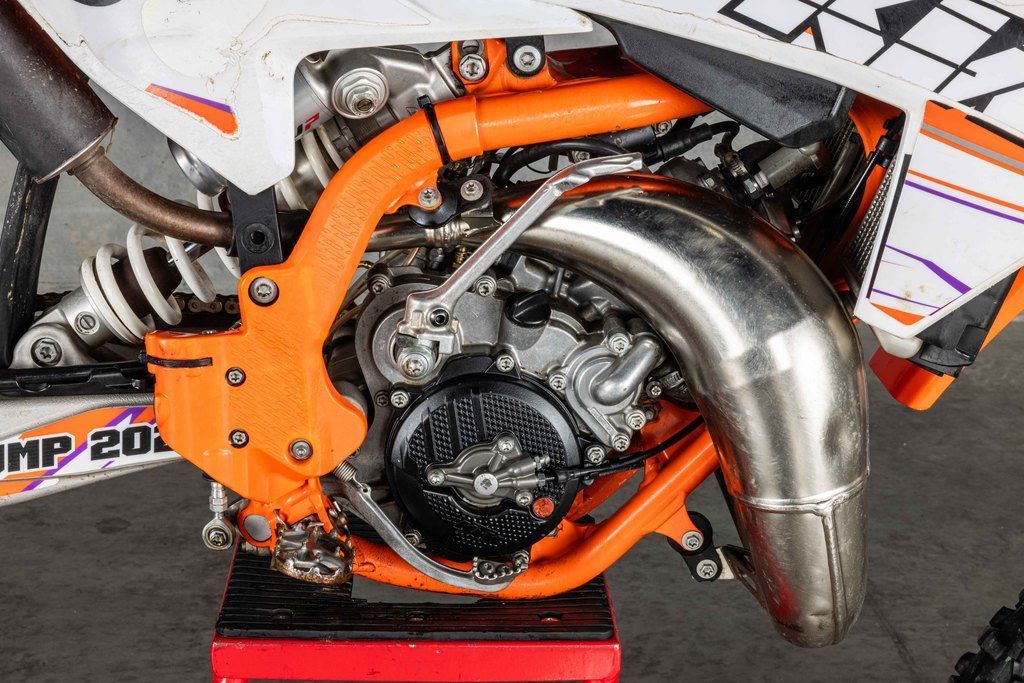 The 2024 KTM 50 SX features a modern and compact engine using the latest 2-stroke technology. Using a 3-shaft design, the crankshaft is positioned near the center of gravity, which not only benefits mass centralization but also creates the ideal intake angle into the reed valve for top-level performance. An independent cylinder blank allows for a completely new cylinder design, with increased power.