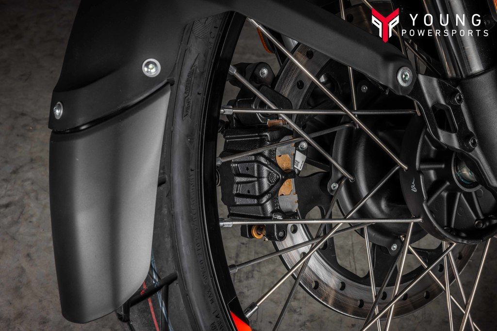 FITS LIKE AN ADVENTURE GLOVEThe best chassis is the one you don’t notice. From the versatile 21” front 17” rear wheel combination to the large enduro footpegs and wide handlebars, the Himalayan works with you in all situations on or off-road. The slim seat and tank let you get your feet firmly on the ground when you stop, while increased ground clearance and longer travel suspension let you choose the roughest tracks.