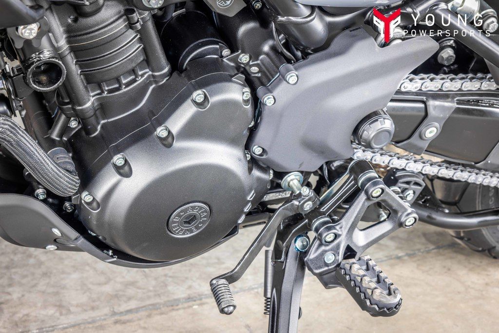 The steel twin-spar frame is stronger, stiffer and narrower between the legs for improved comfort while riding in a standing position. Better handling, better stability and better balance.