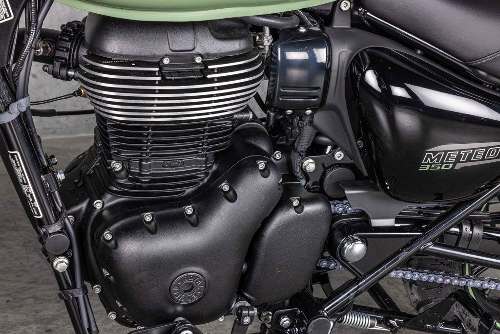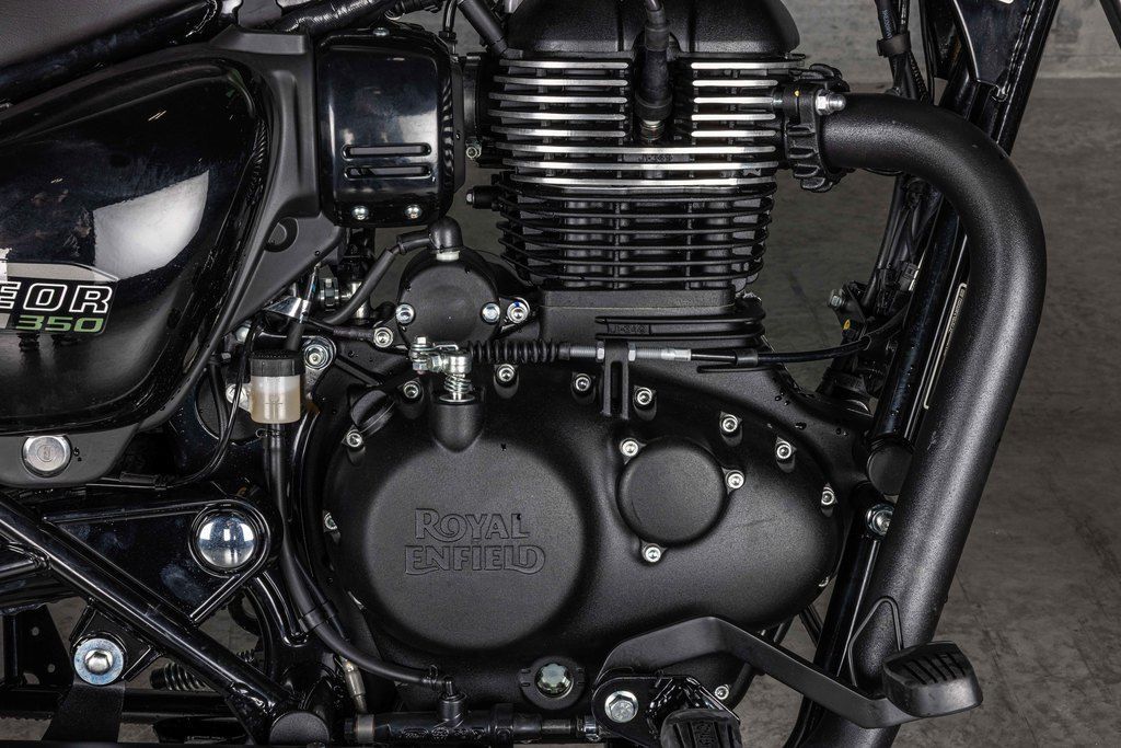 A New HeartAt the heart of the Meteor is the all-new air-oil cooled, 349cc, SOHC engine with a characteristic long stroke and electronic fuel injection system producing smooth tractable power & plenty of bottom-end torque. Continuing the legend of the easy singles, the new engine possesses a visceral exhaust note that is distinctively Royal Enfield.
