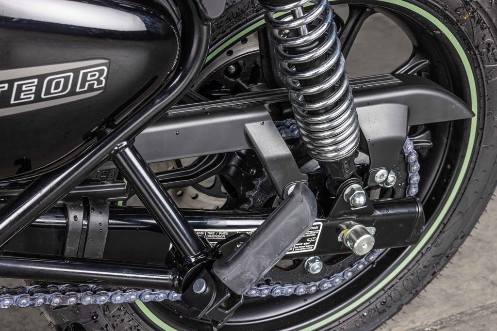 A Refined GlideWith an enhanced chassis setup, accessible riding position, advanced braking ability, high specification suspension and responsive power delivery, the Meteor is set to light up the world of city cruising. The all-new chassis is stronger, stiffer and more durable and designed for straight-line stability, cornering and maneuverability without compromising on comfort.