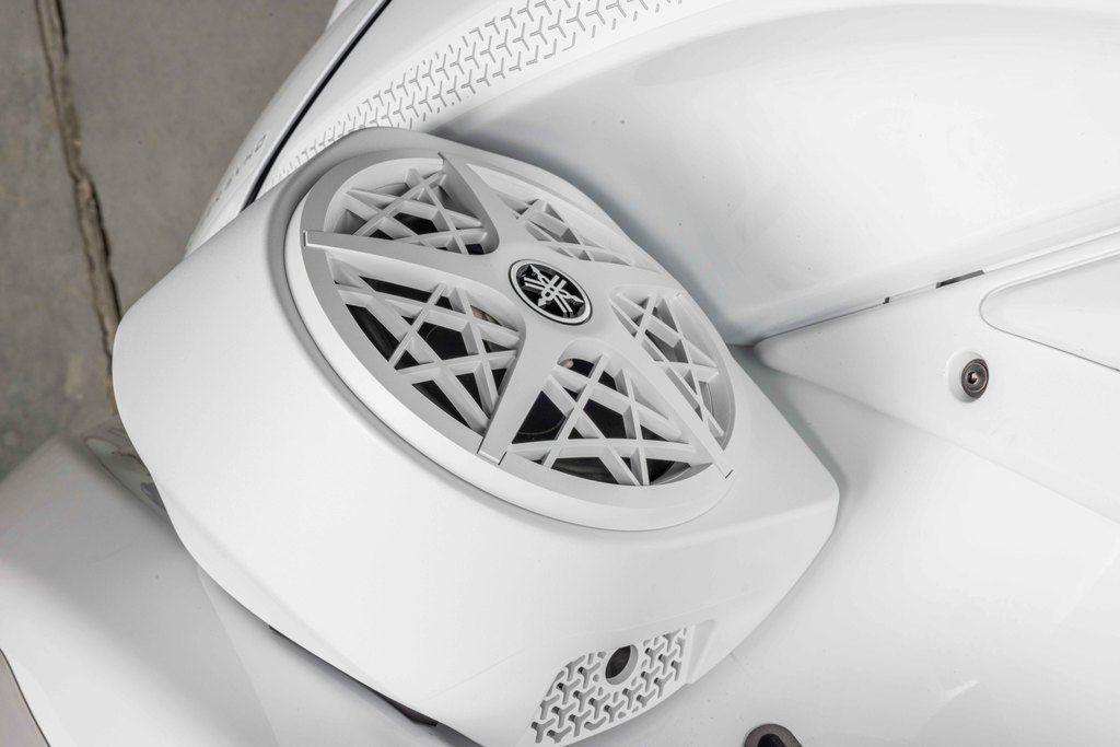 Experience the Yamaha audio speakers, now factory-installed for the WaveRunner® series. Engineered to withstand the rigorous conditions of marine environments, these premium speakers offer exceptional durability and deliver superior sound quality, even at high speeds and through splashing waves.