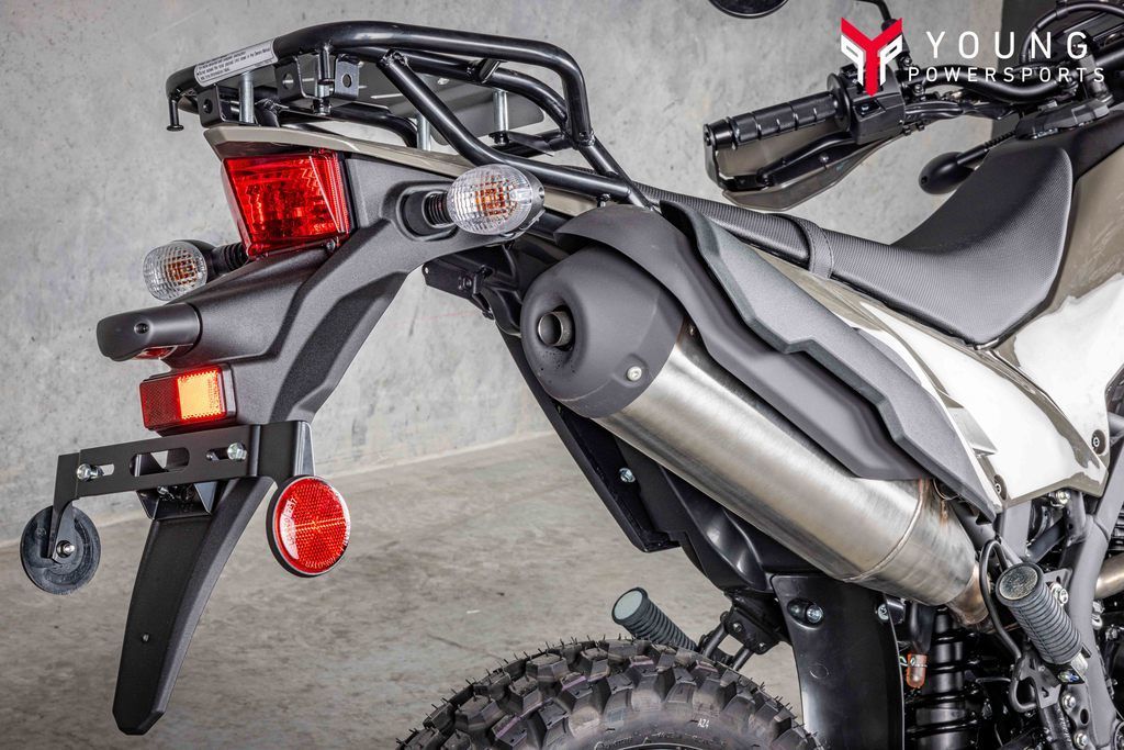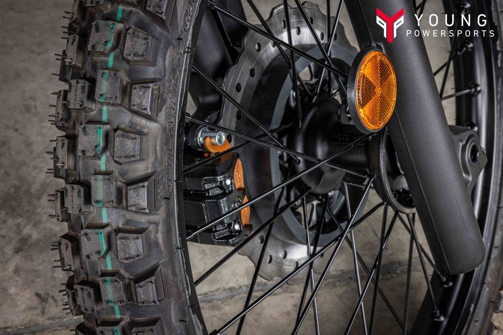 ADDITIONAL:- Rugged dual-sport capability and blacked-out utilitarian trail bike design