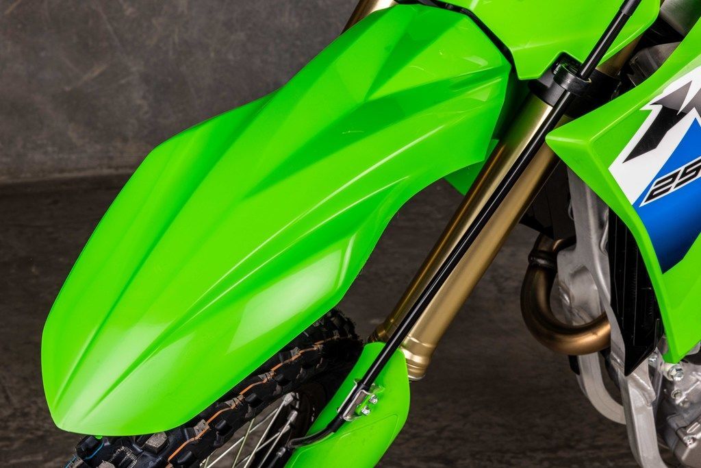 Victory starts with the KX™250 motorcycle’s potent 249cc engine. The anatomy of this race-winning engine includes finger-follower valve actuation, a downdraft-style intake, and dual injectors. This KX250 is the most competitive racing package to date, based on our championship-proven 250-class platform that’s dominated motocross for decades.