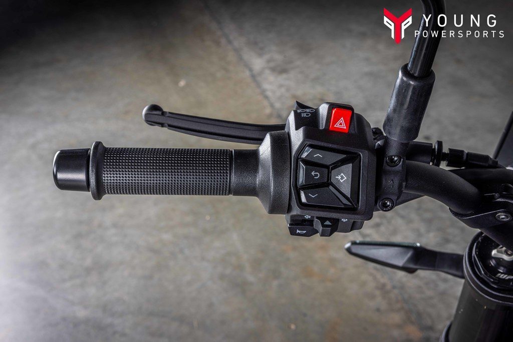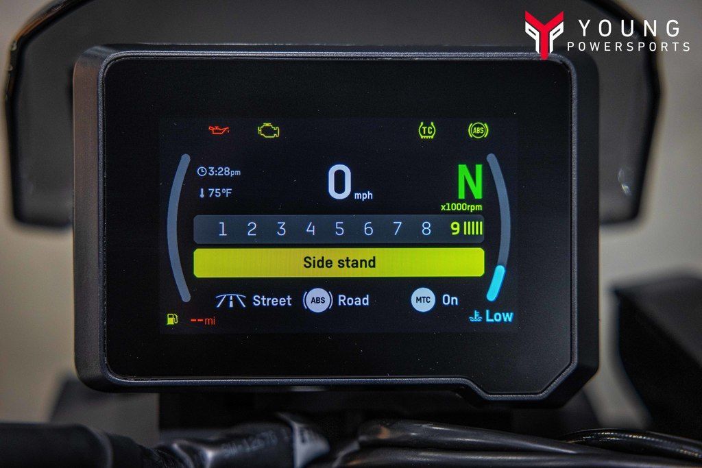 A 5" TFT dashboard with a bonded glass screen shows vital information to riders. The travelling speed, fuel level, and the selected gear are all clearly displayed and visible at a glance. It is controlled by the backlight switch cubes on the left side of the handlebar.