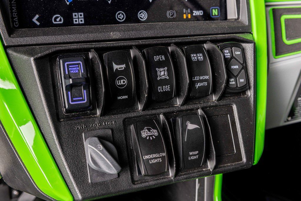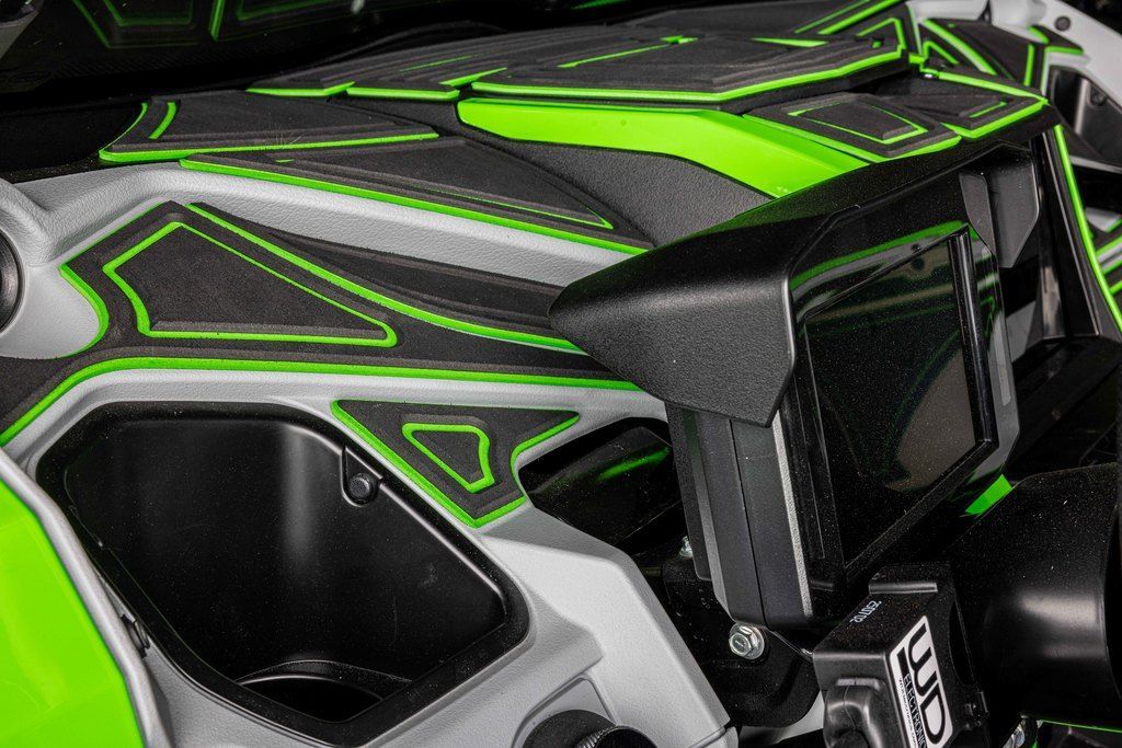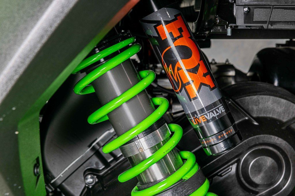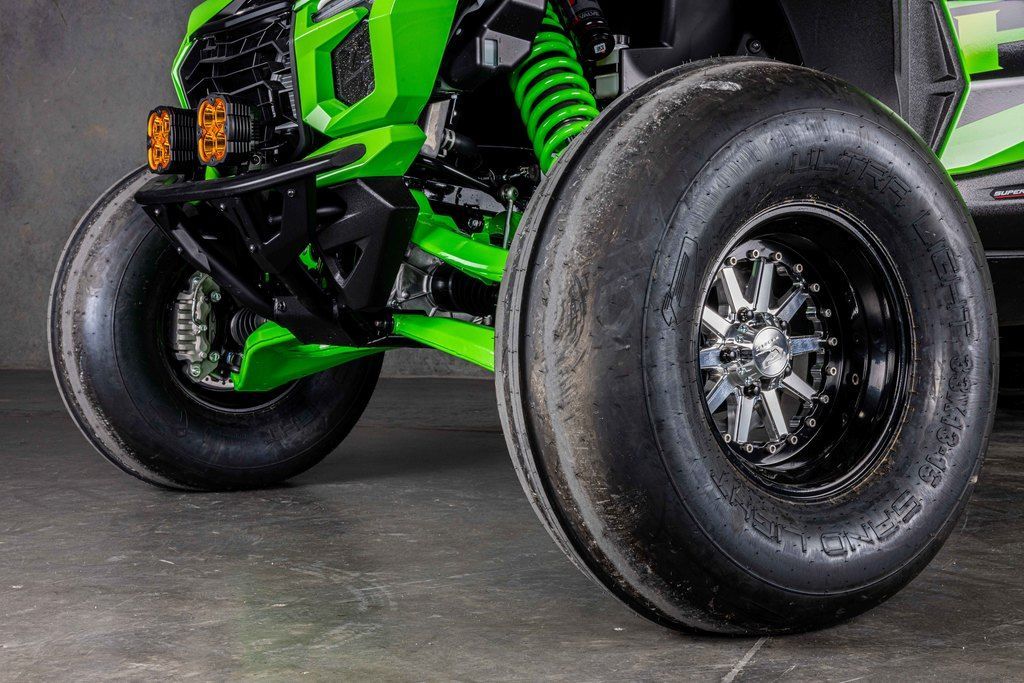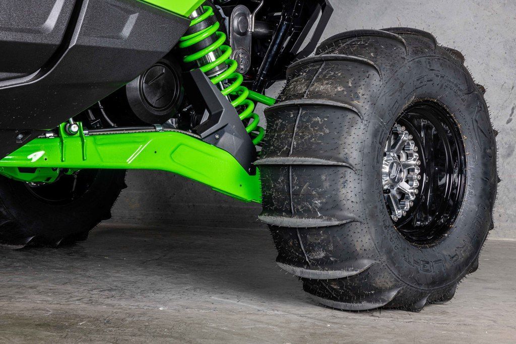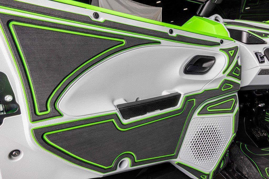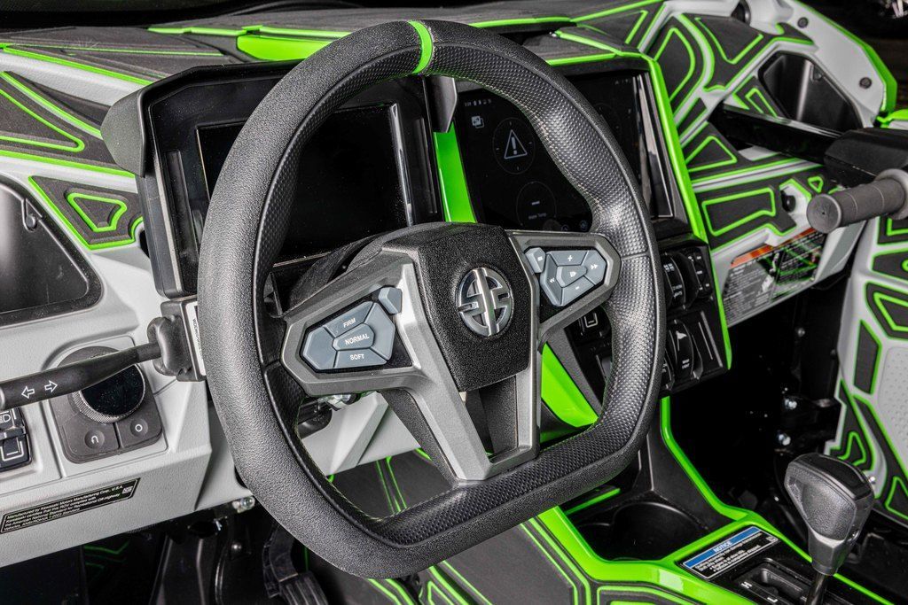 As the new Teryx® side x side flagship, it was important that the Teryx4/5 H2 side x sides look the part. The sleek, low-profile design, wide stance, and aggressive front-end are complemented by luxuriously painted Lime Green bodywork—a head-turning combination that conveys both its high level of performance as well as its high-grade build.