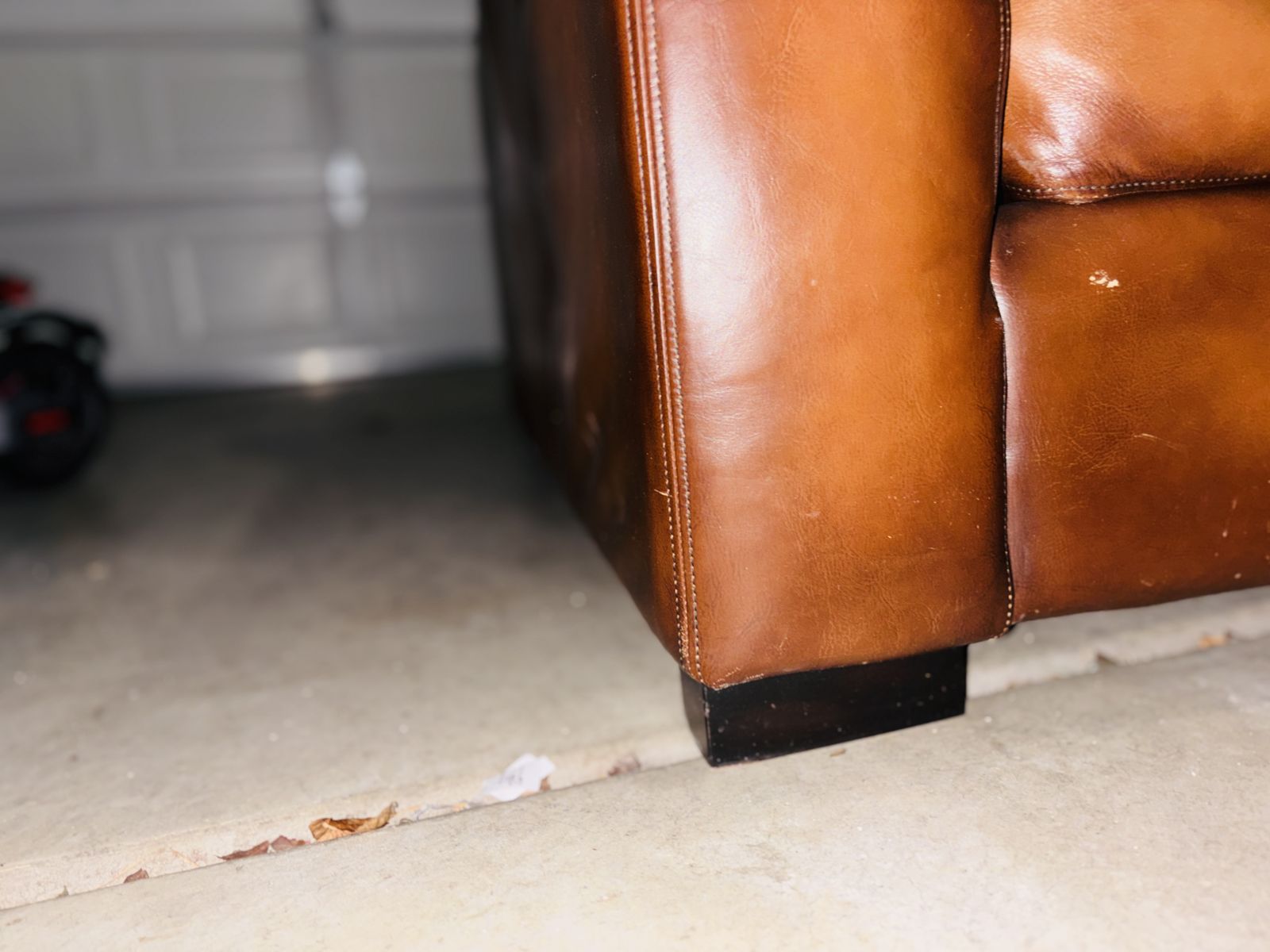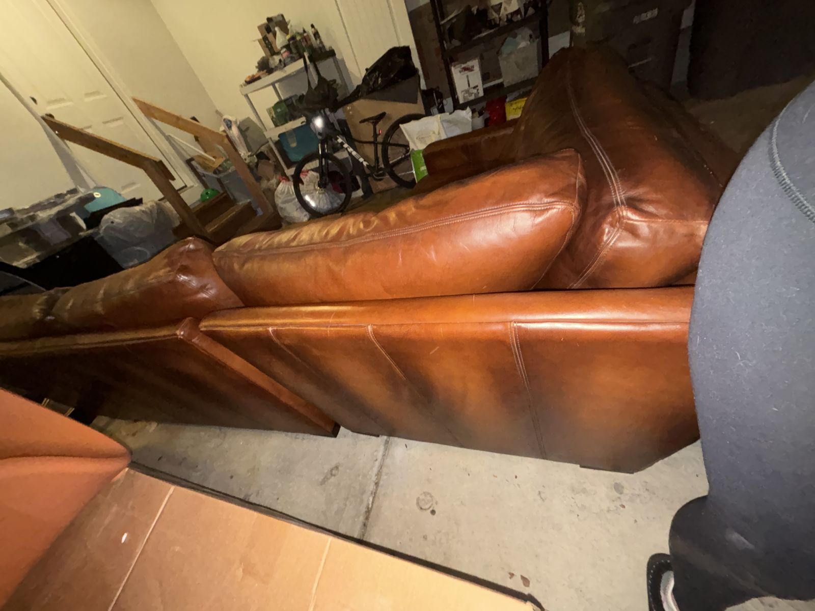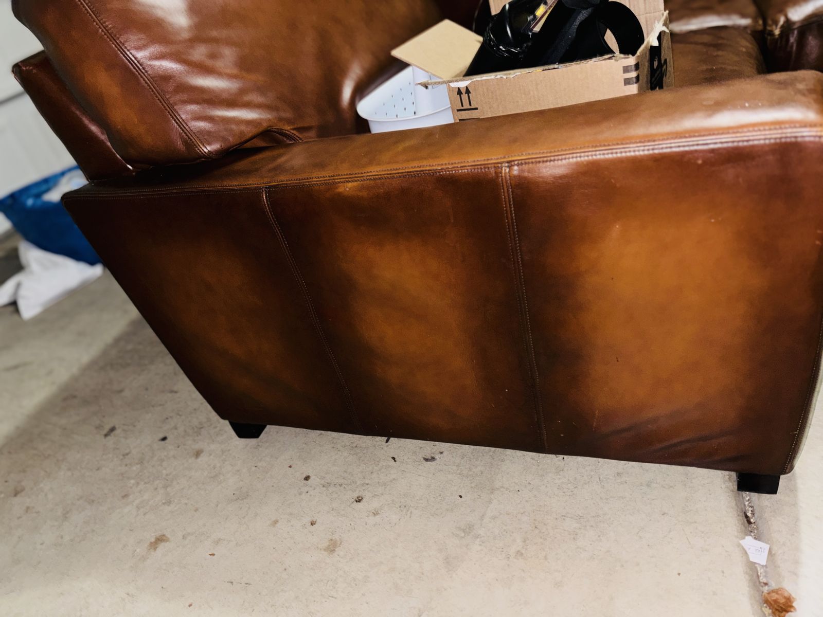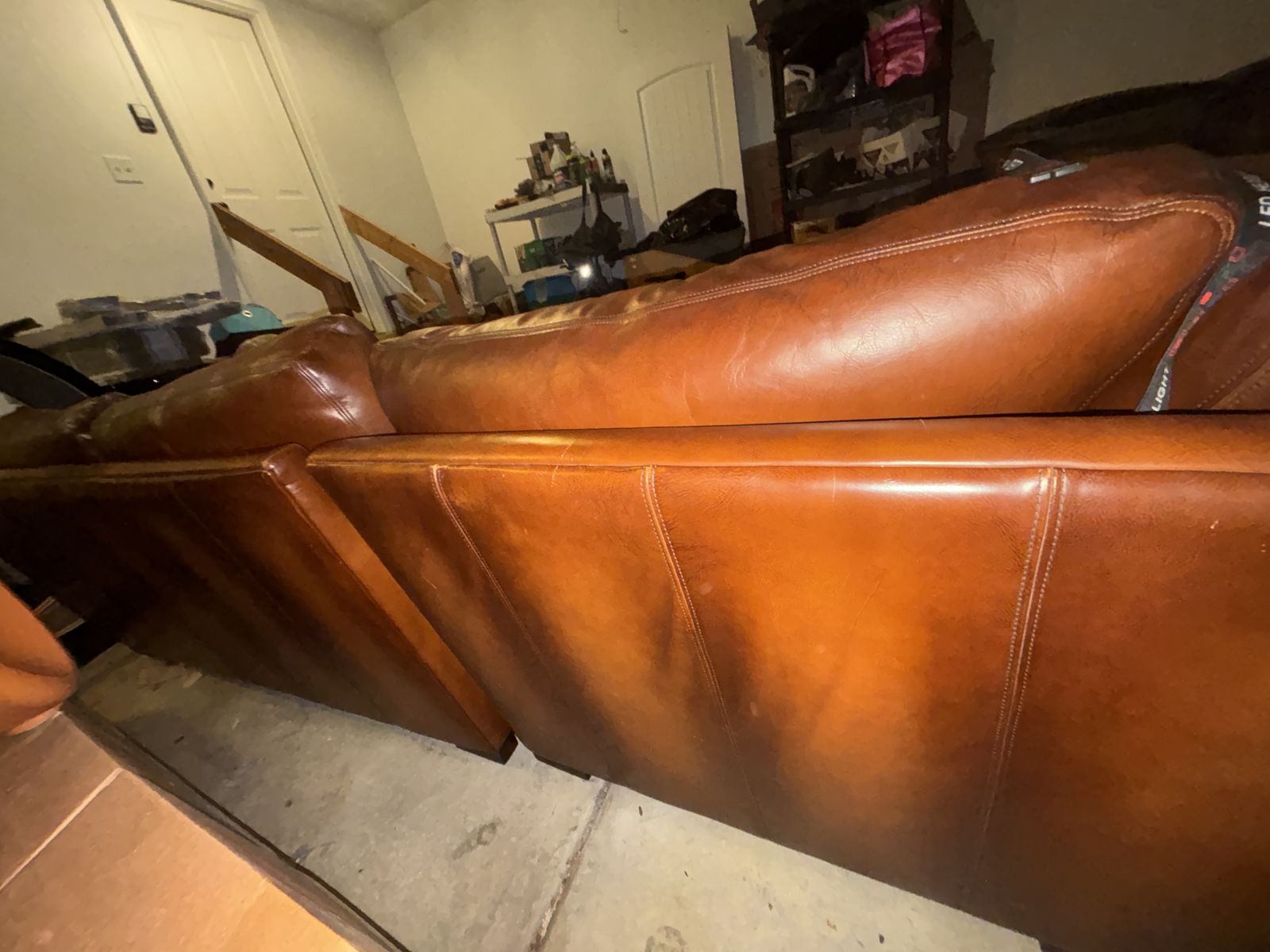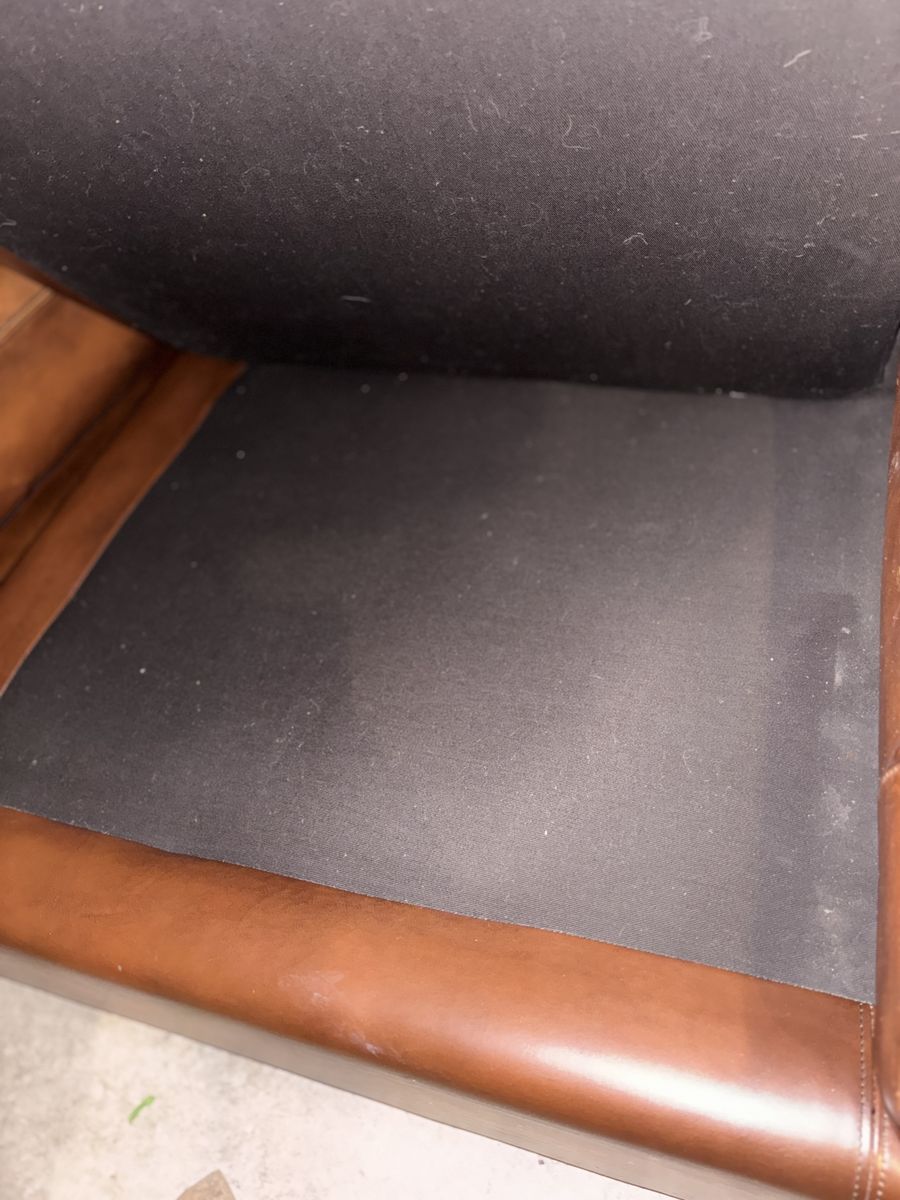 This genuine Pottery Barn L‑shaped leather sectional was gifted to me by a client specifically so I could sell it and put the money toward myself. It’s been extremely well‑kept, rarely used, and it shows.