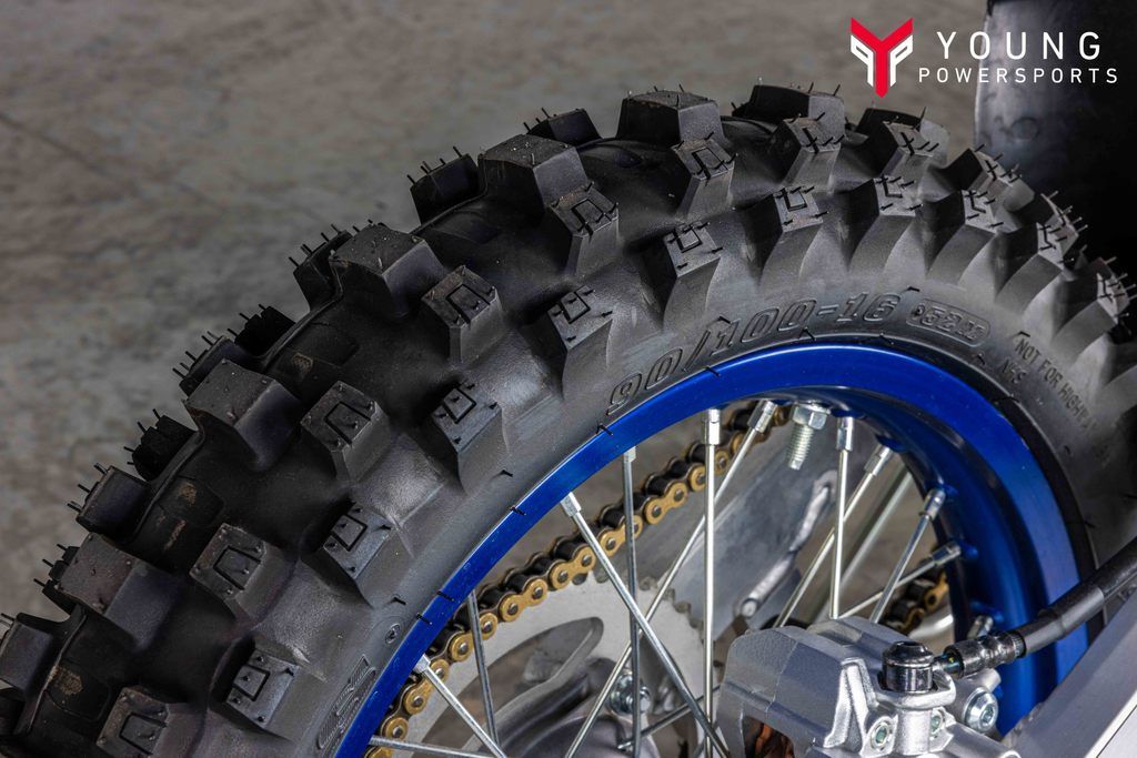 High performance 70/100/19 front and 90/100/16 rear Dunlop® MX3S tires provide exceptional traction on a variety of terrain.