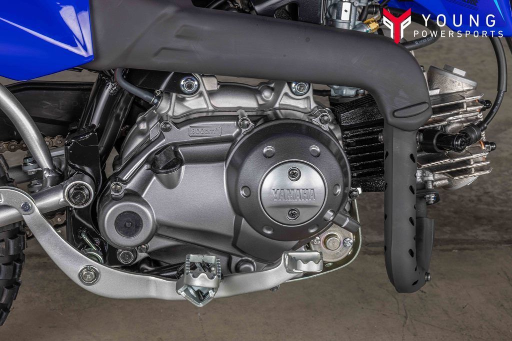 The curved steel backbone frame keeps the TT-R50E narrow and has three engine-mounting points for excellent rigidity and handling.
